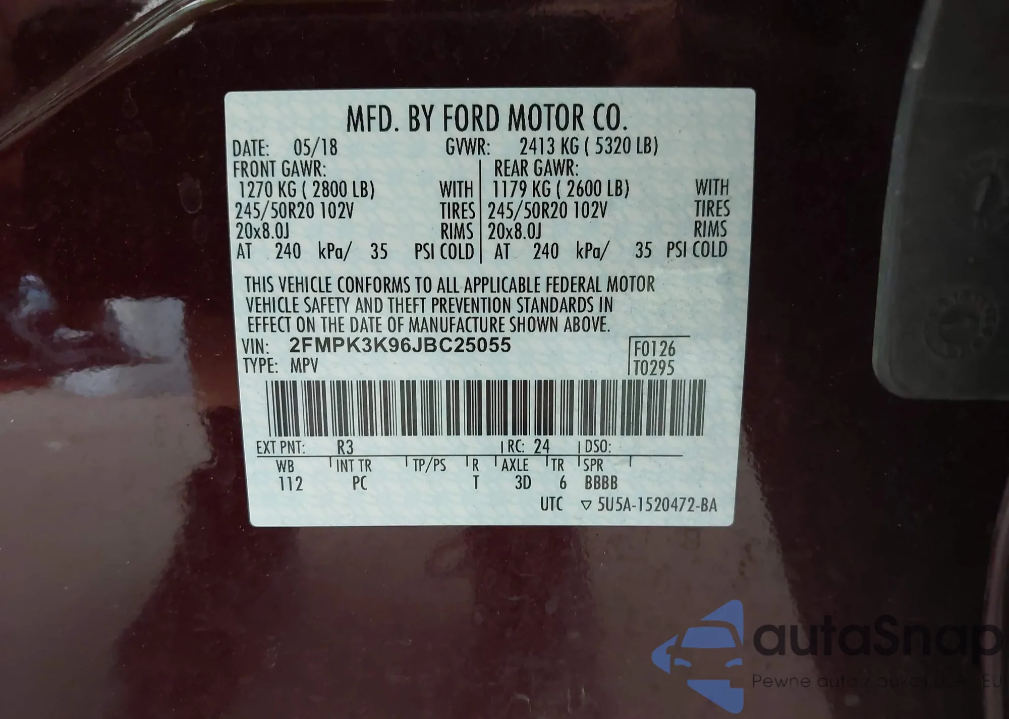 VIN: 2FMPK3K96JBC25055