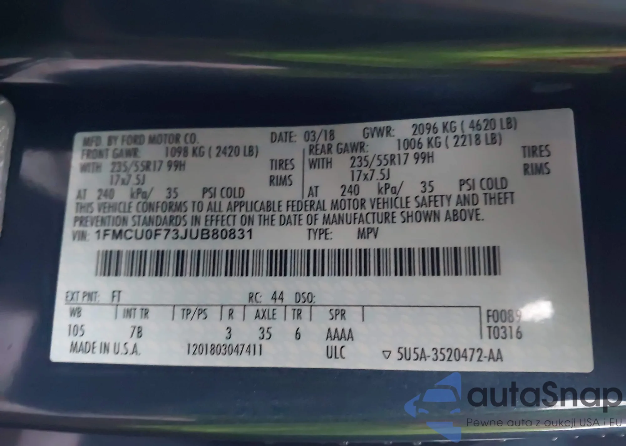 VIN: 1FMCU0F73JUB80831