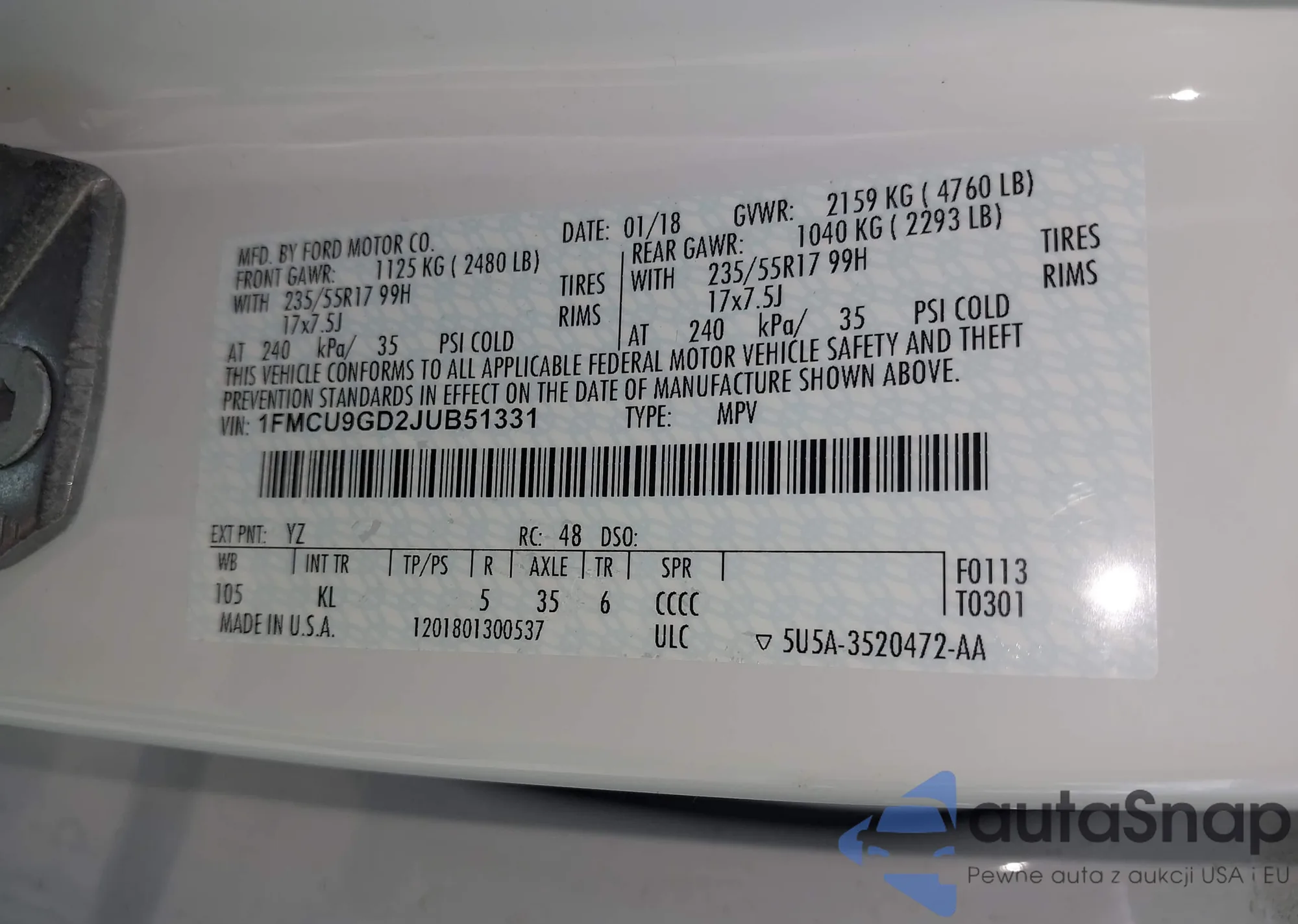 VIN: 1FMCU9GD2JUB51331