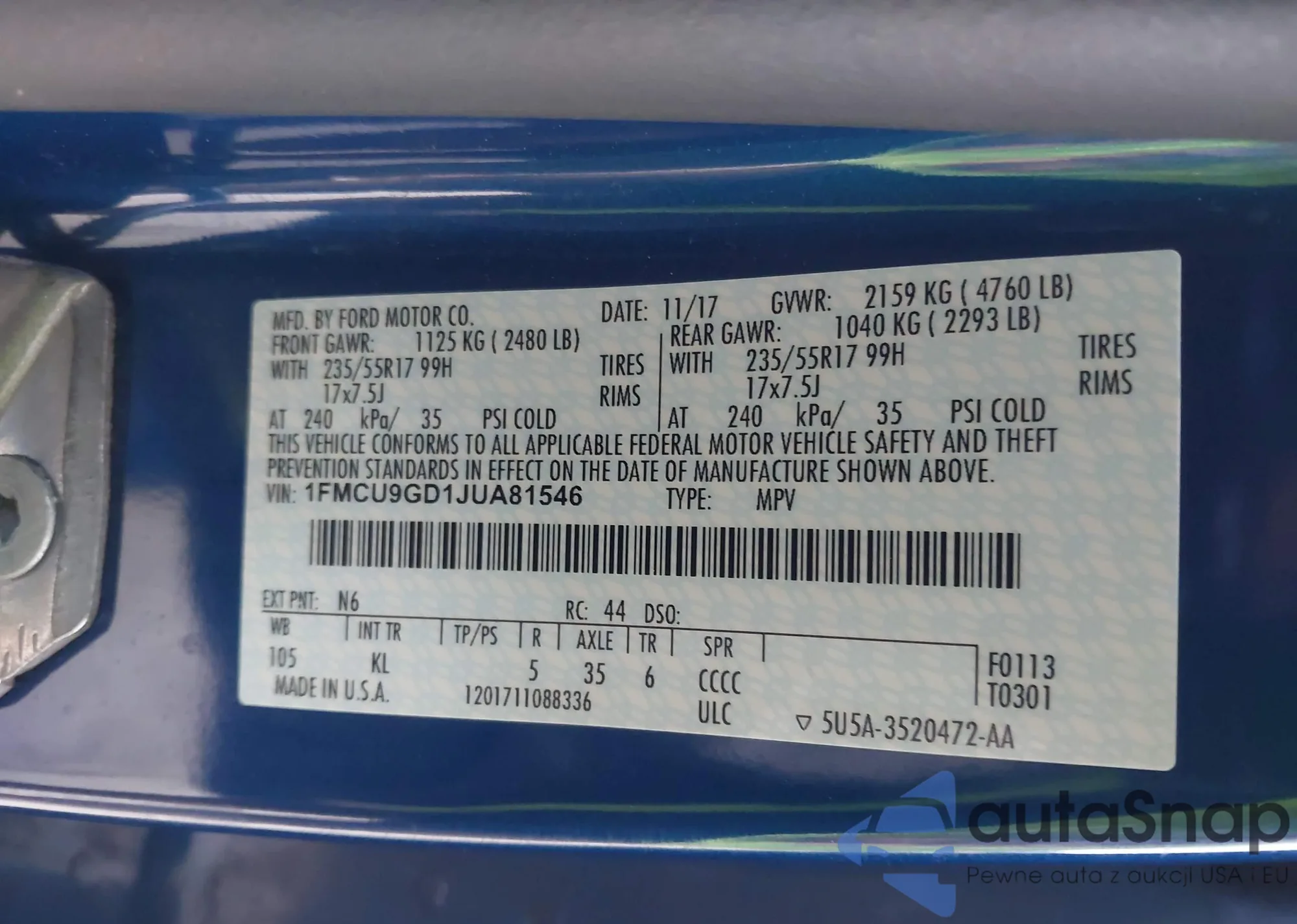 VIN: 1FMCU9GD1JUA81546