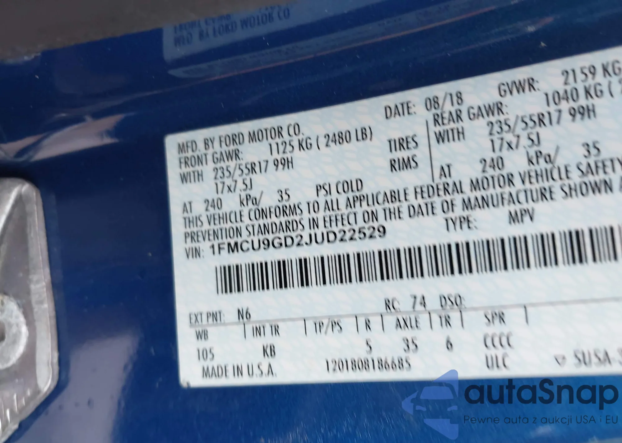 VIN: 1FMCU9GD2JUD22529