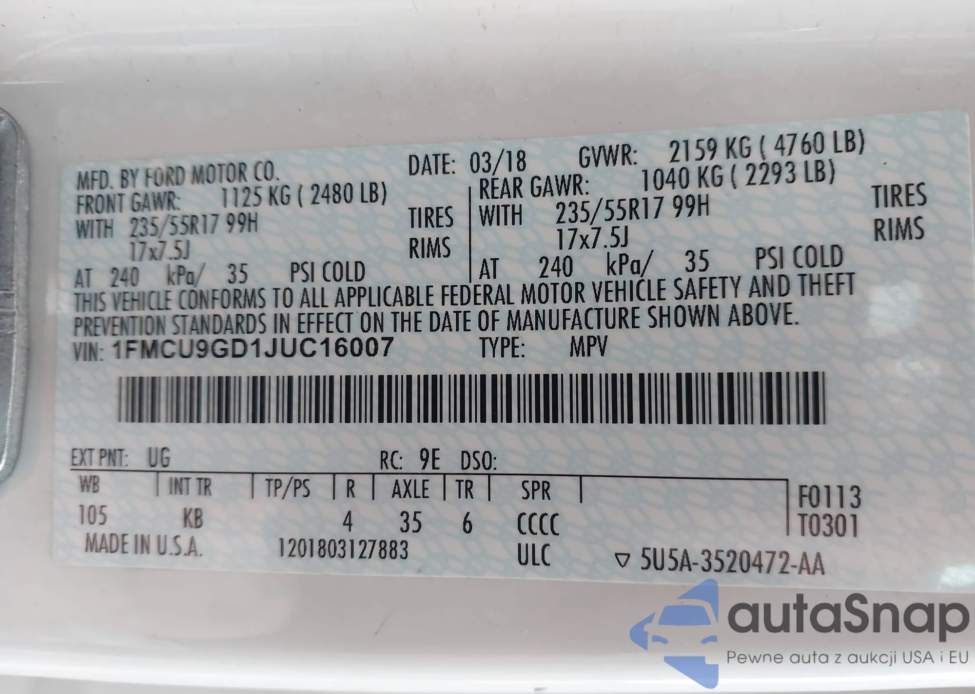 VIN: 1FMCU9GD1JUC16007