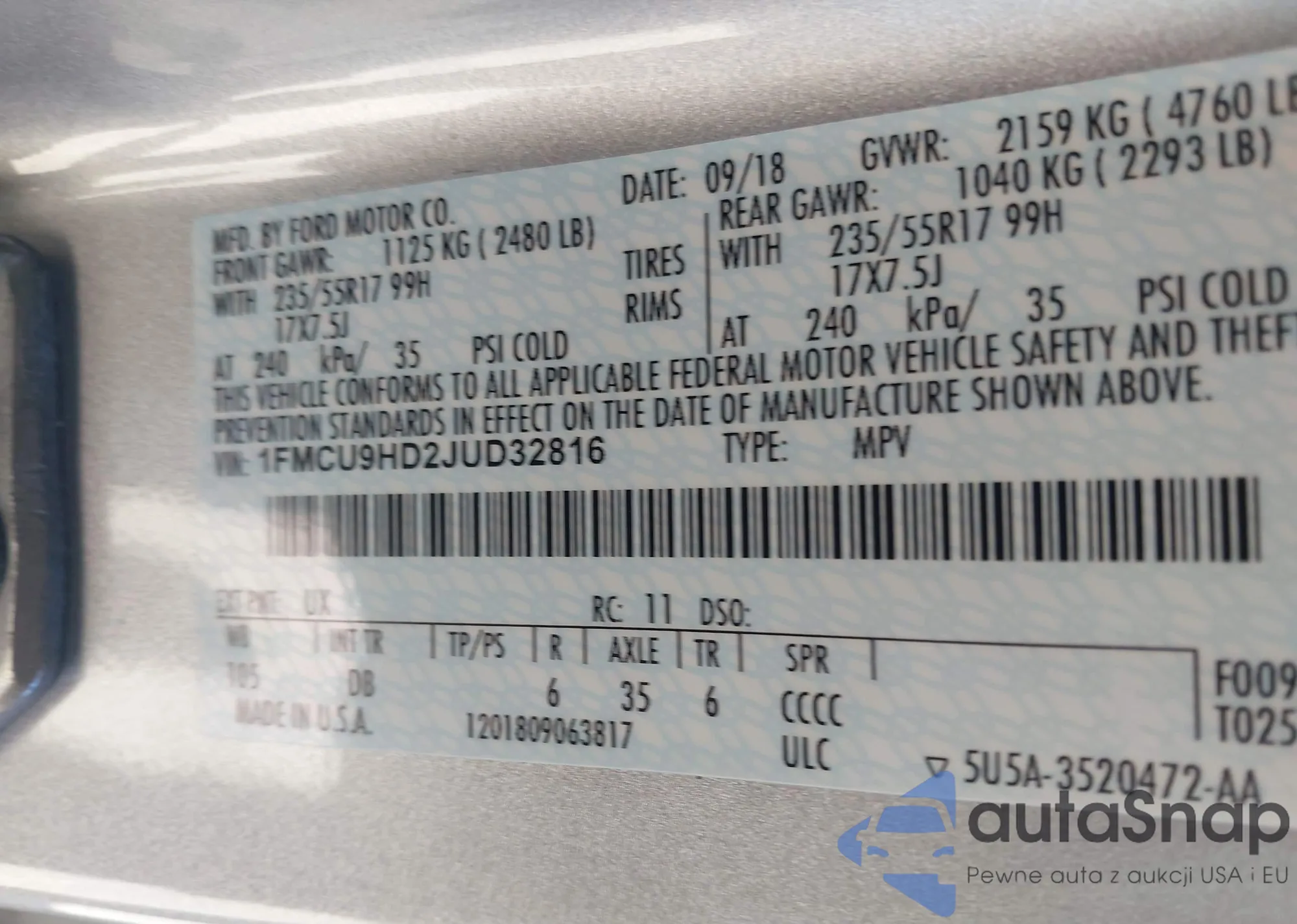 VIN: 1FMCU9HD2JUD32816