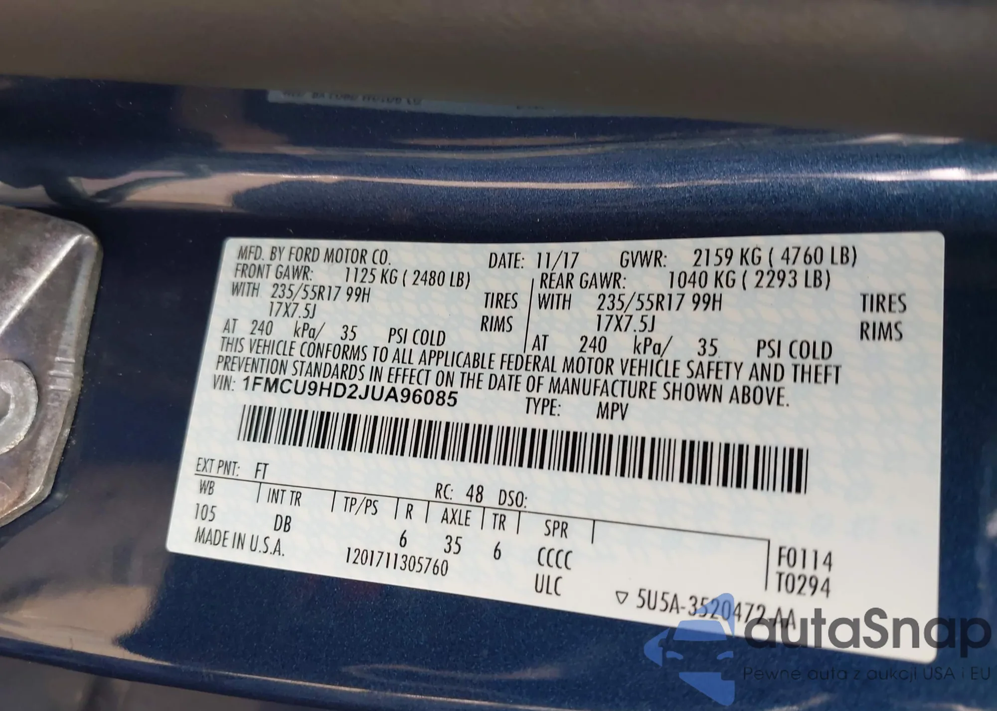 VIN: 1FMCU9HD2JUA96085