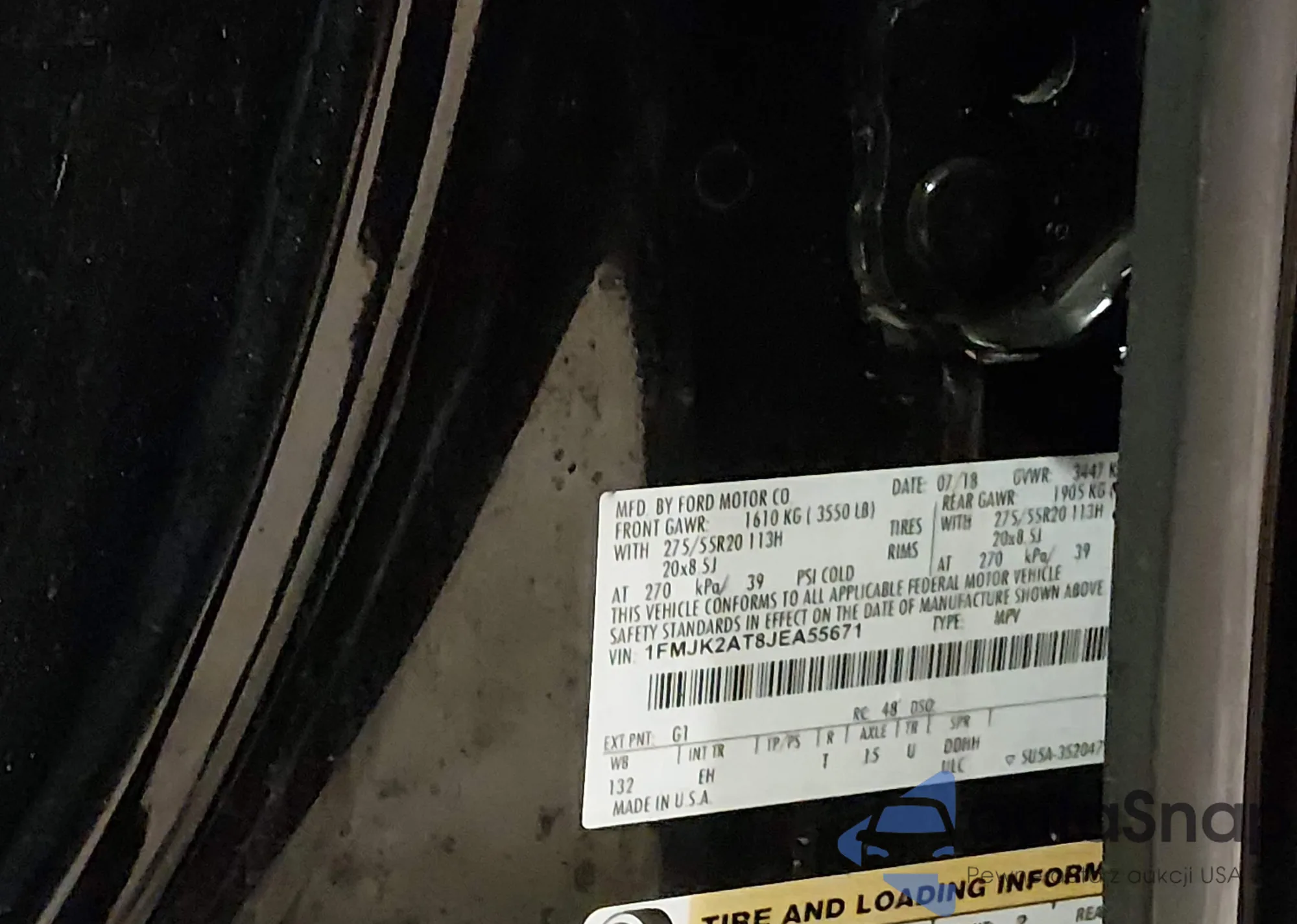 Samochód Ford Expedition 2018 (VIN 1FMJK2AT8JEA55671) nie był wcześniej licytowany. Dokumenty są czyste, przebieg odpowiada lub jest niższy niż średnia rynku. Sprzedaje go firma ubezpieczeniowa – polecamy zakup. Dostawa do portu zajmie ok. 6–8 tygodni.