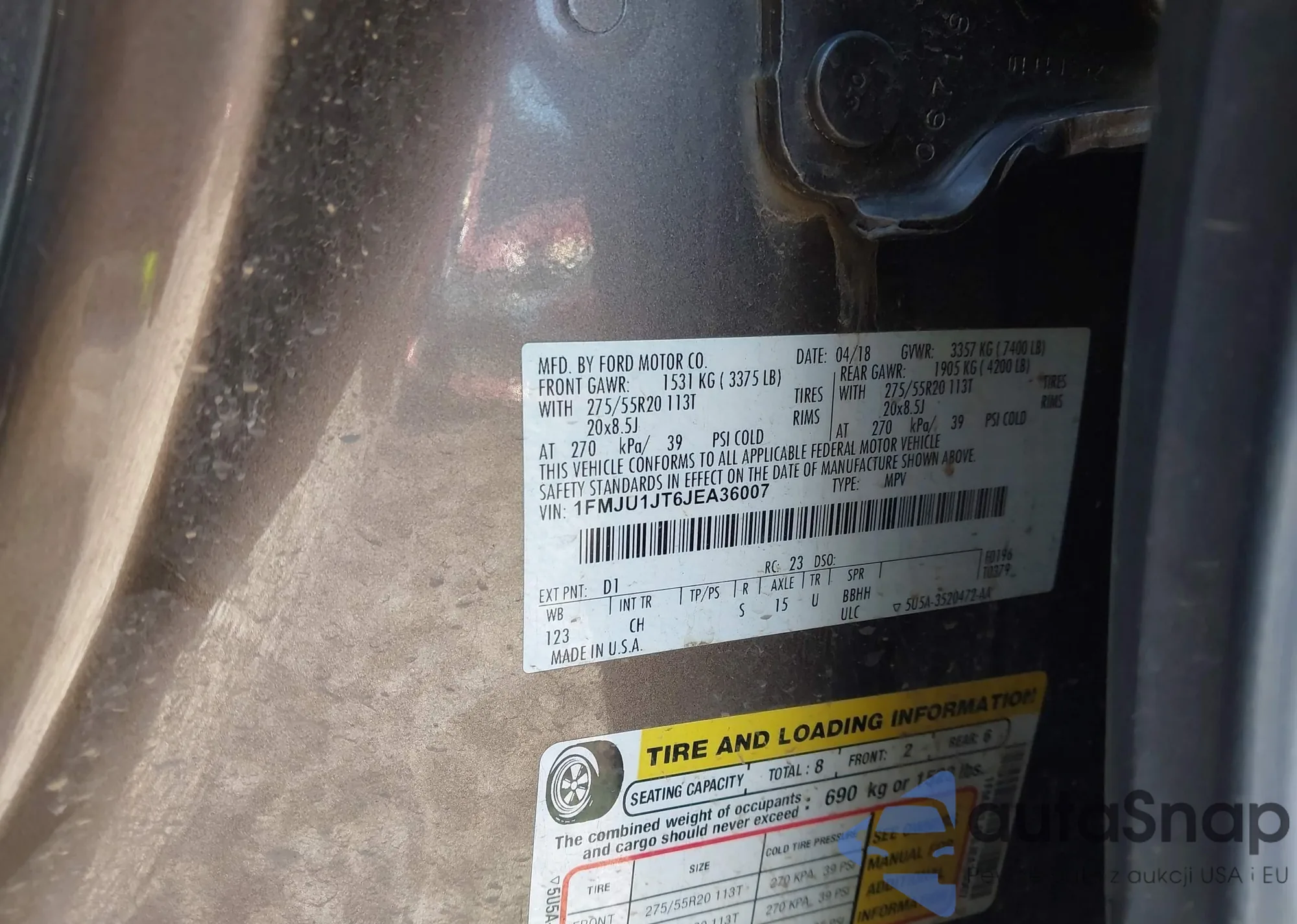 VIN: 1FMJU1JT6JEA36007