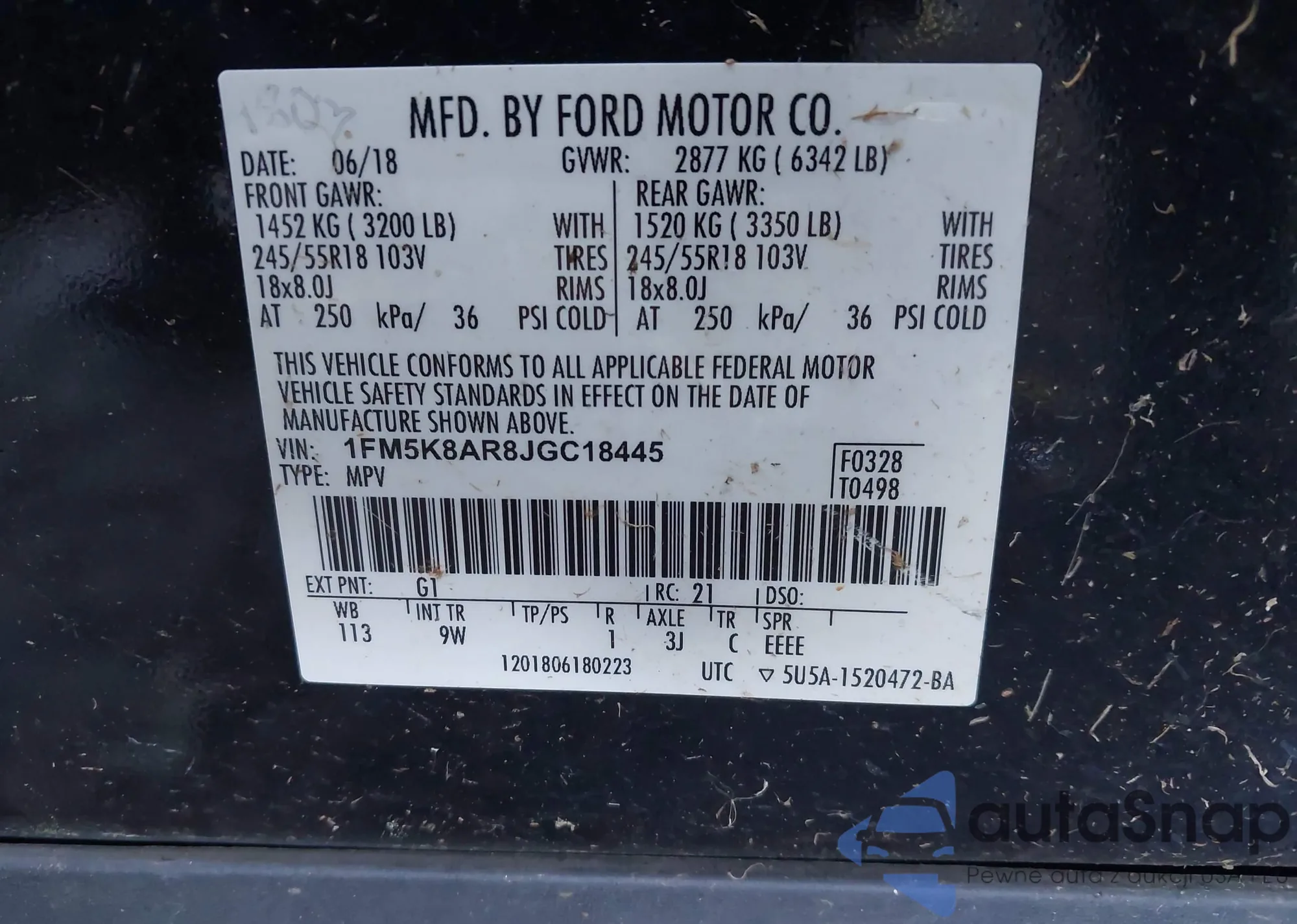 VIN: 1FM5K8AR8JGC18445