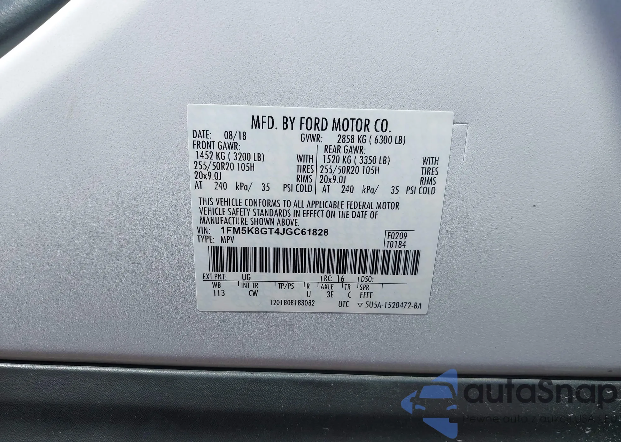 VIN: 1FM5K8GT4JGC61828
