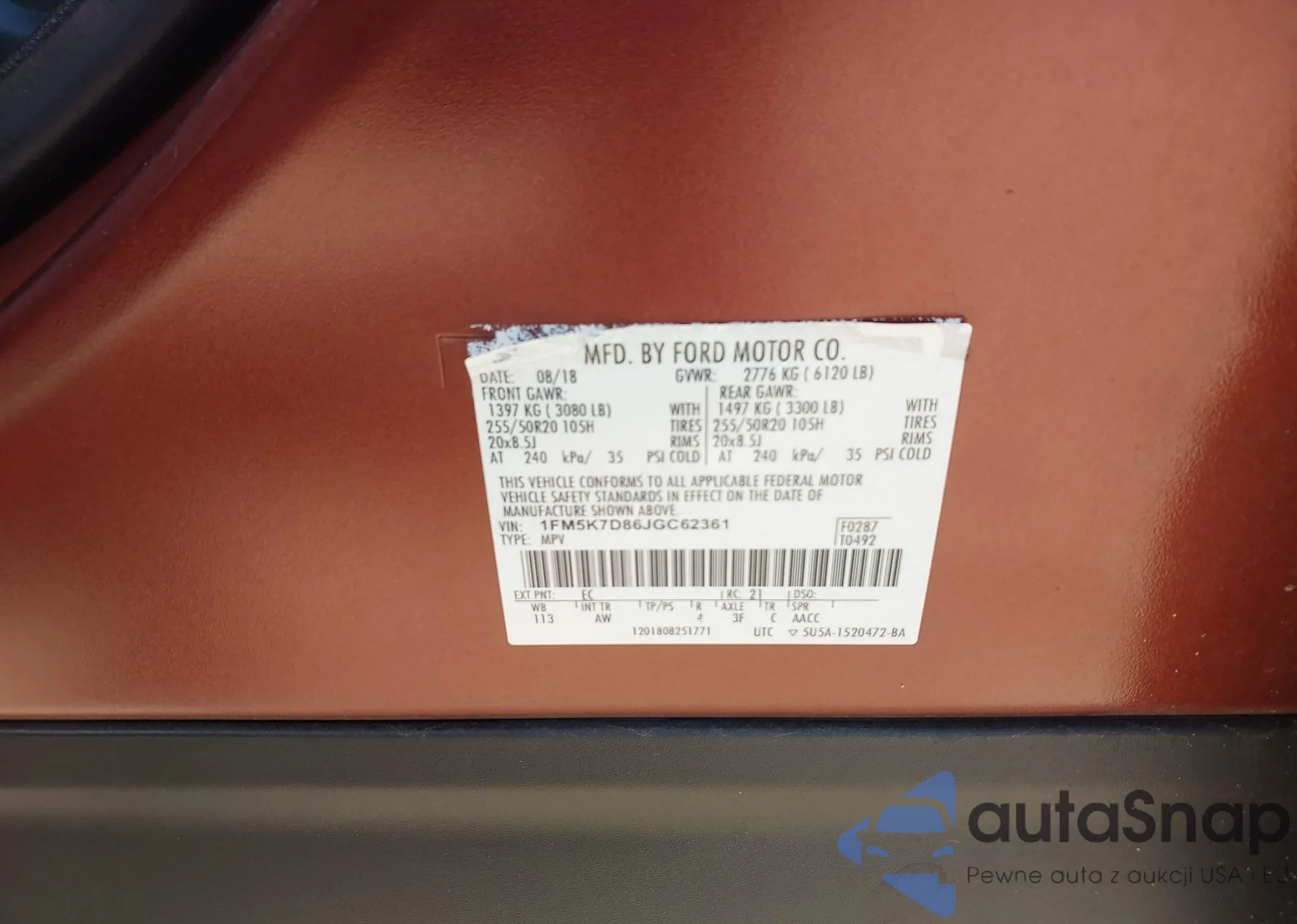 • VIN: 1FM5K7D86JGC62361