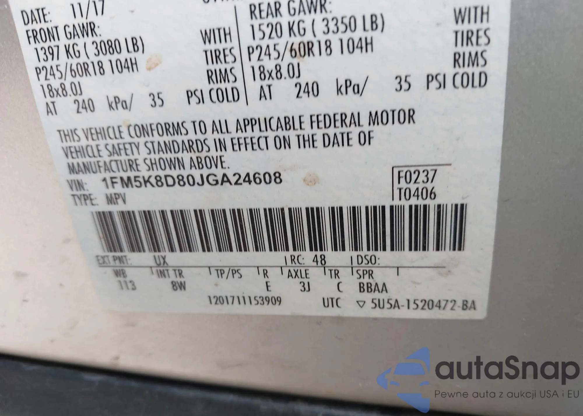 VIN: 1FM5K8D80JGA24608
