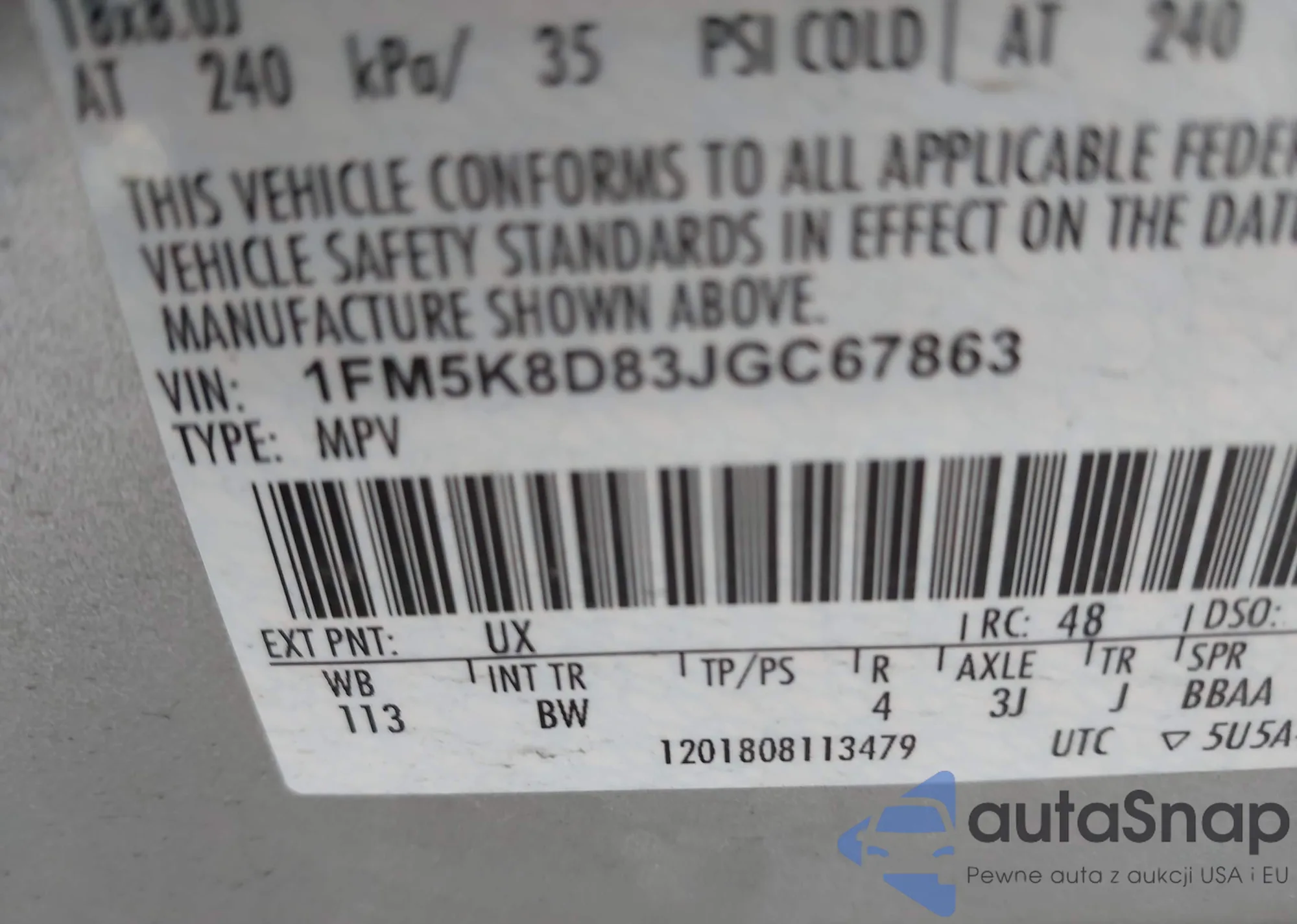 VIN: 1FM5K8D83JGC67863