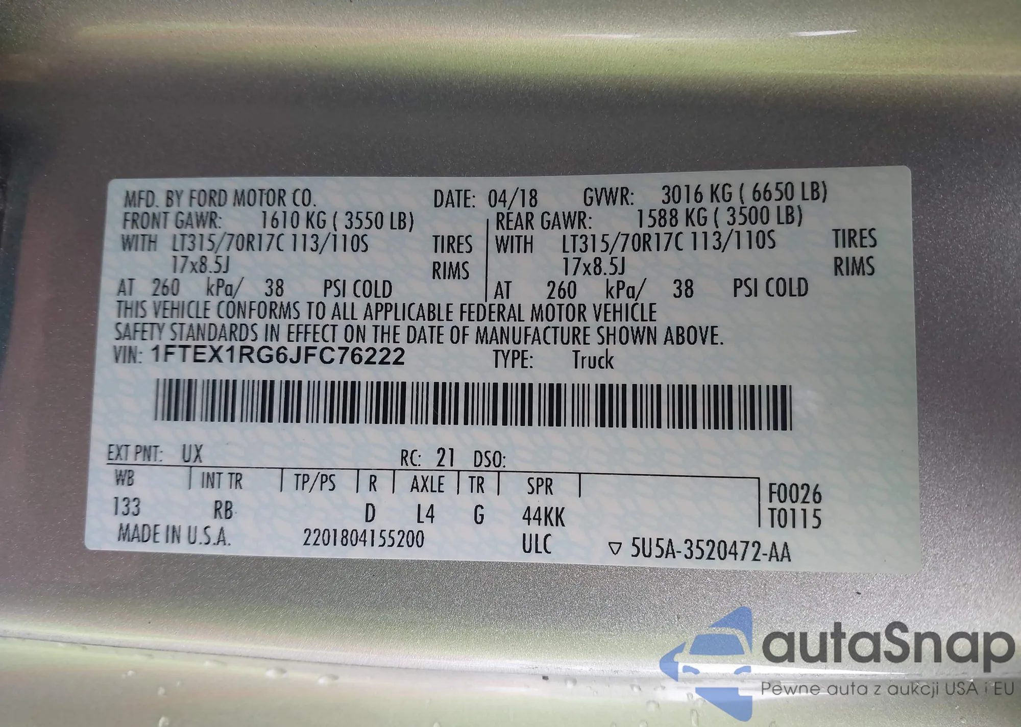 VIN: 1FTEX1RG6JFC76222