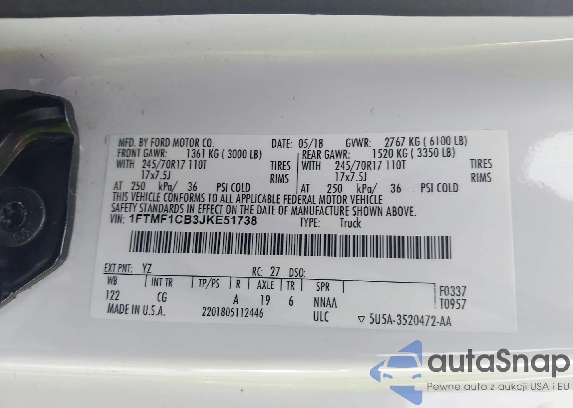 VIN: 1FTMF1CB3JKE51738
