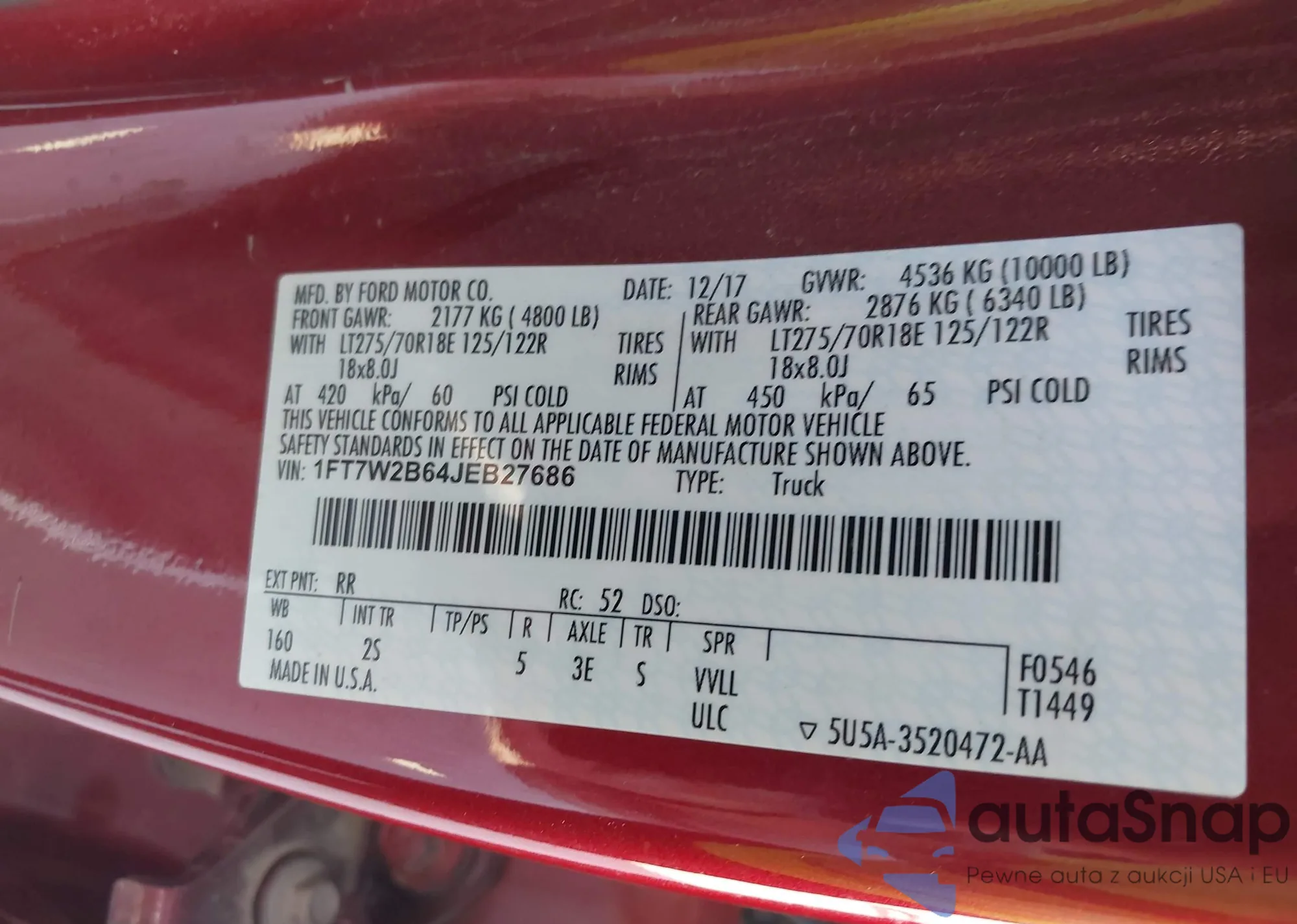 • VIN: 1FT7W2B64JEB27686