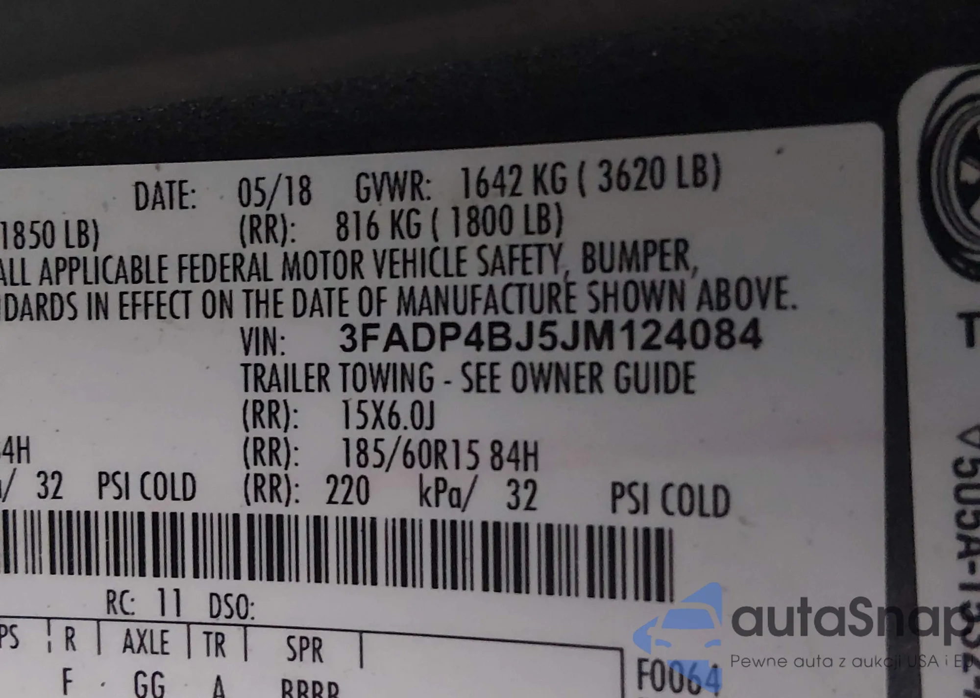 • VIN: 3FADP4BJ5JM124084
