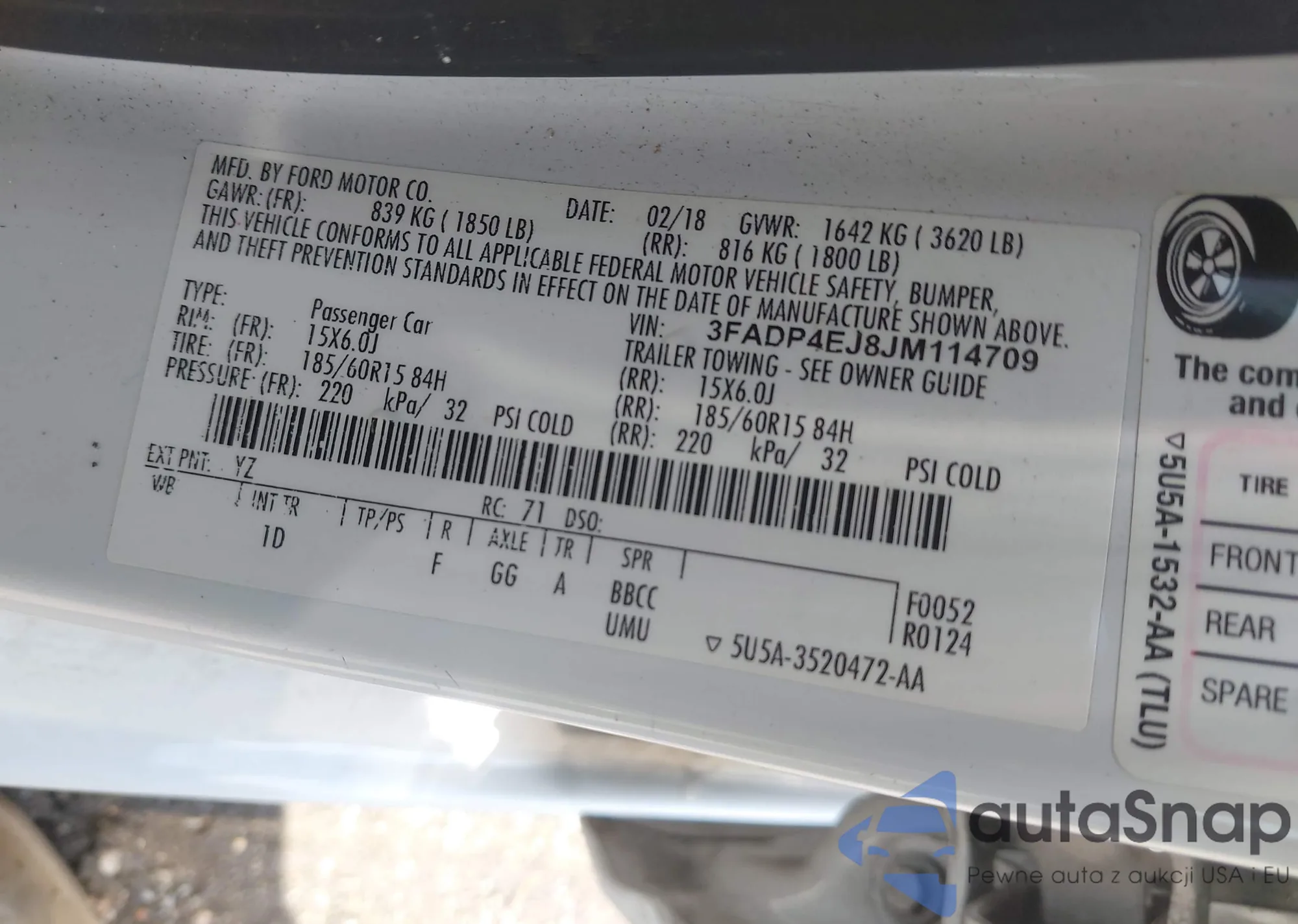 VIN: 3FADP4EJ8JM114709