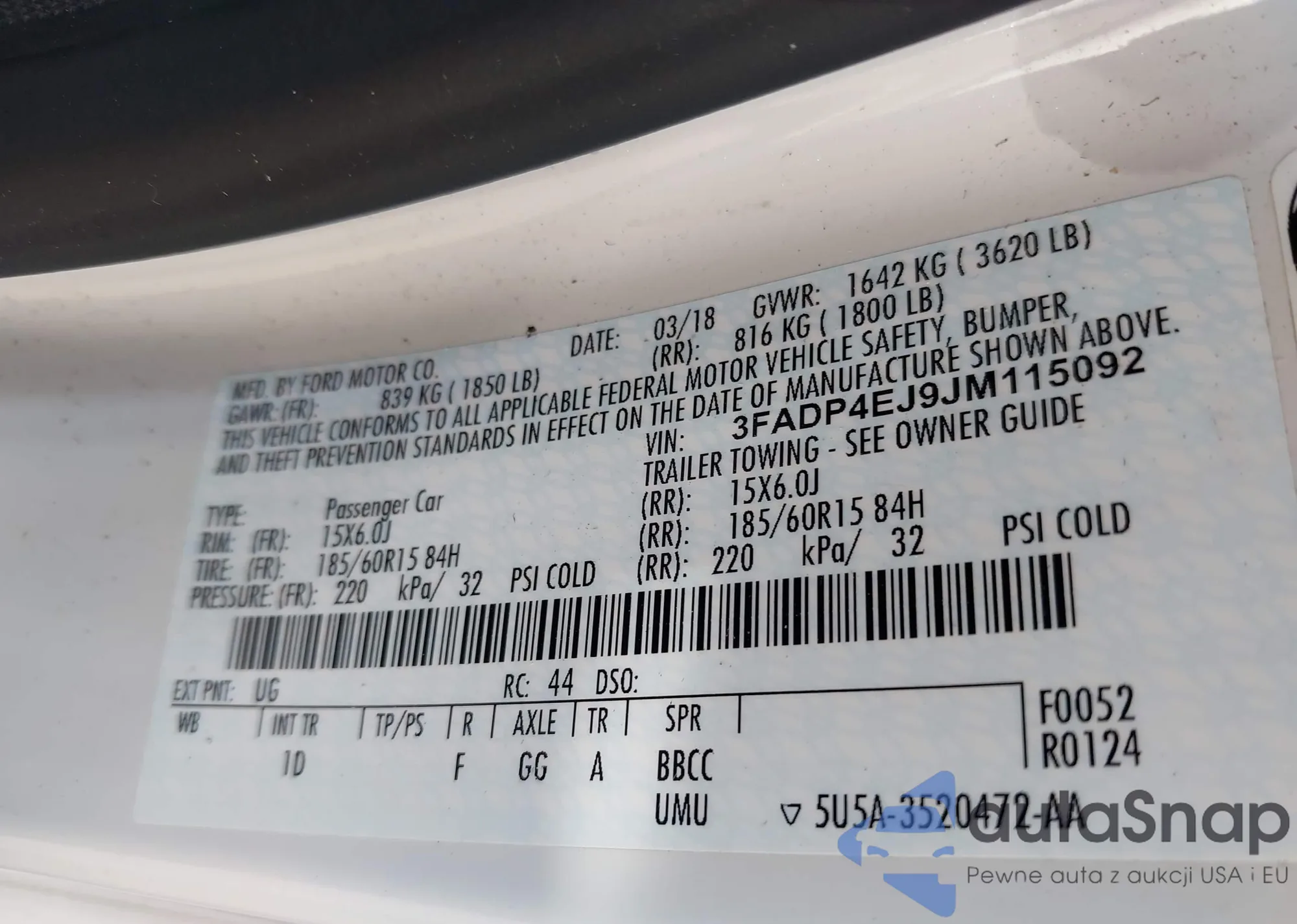 VIN: 3FADP4EJ9JM115092