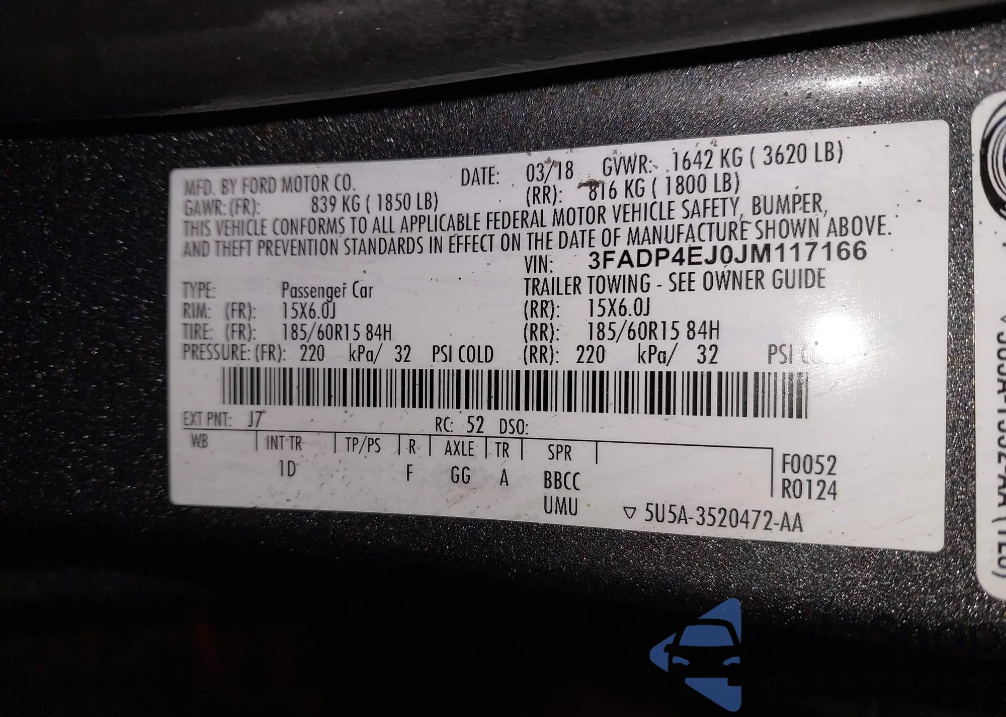 Samochód Ford Fiesta 2018 (VIN 3FADP4EJ0JM117166) nie był wcześniej licytowany. Dokumenty są czyste, przebieg odpowiada lub jest niższy niż średnia rynku. Sprzedaje go firma ubezpieczeniowa – polecamy zakup. Dostawa do portu zajmie ok. 6–8 tygodni.