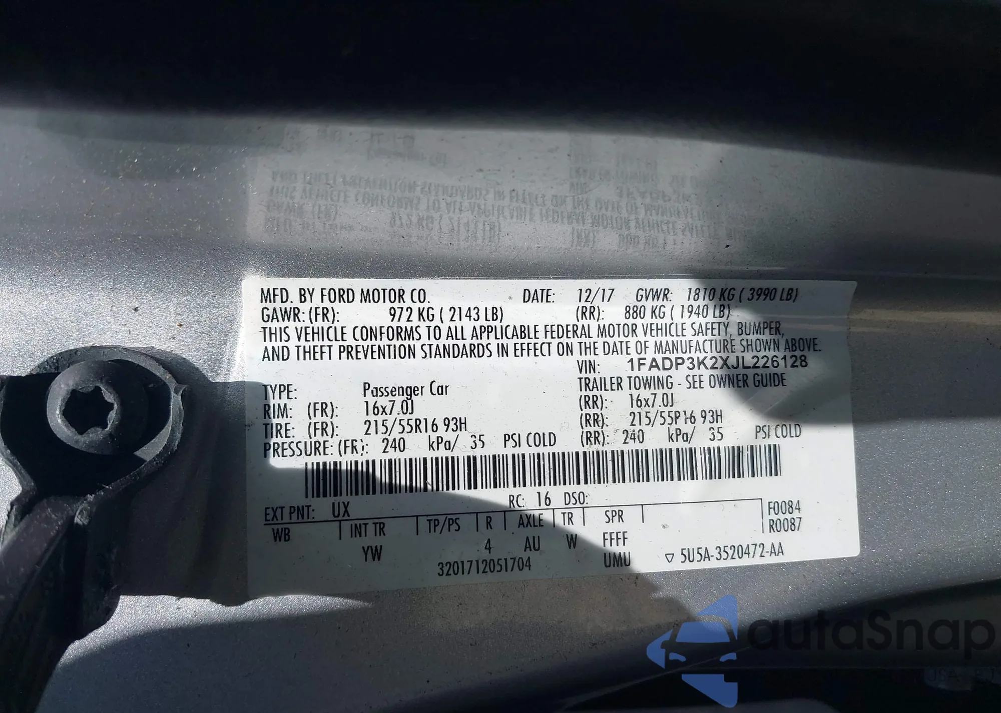 VIN: 1FADP3K2XJL226128