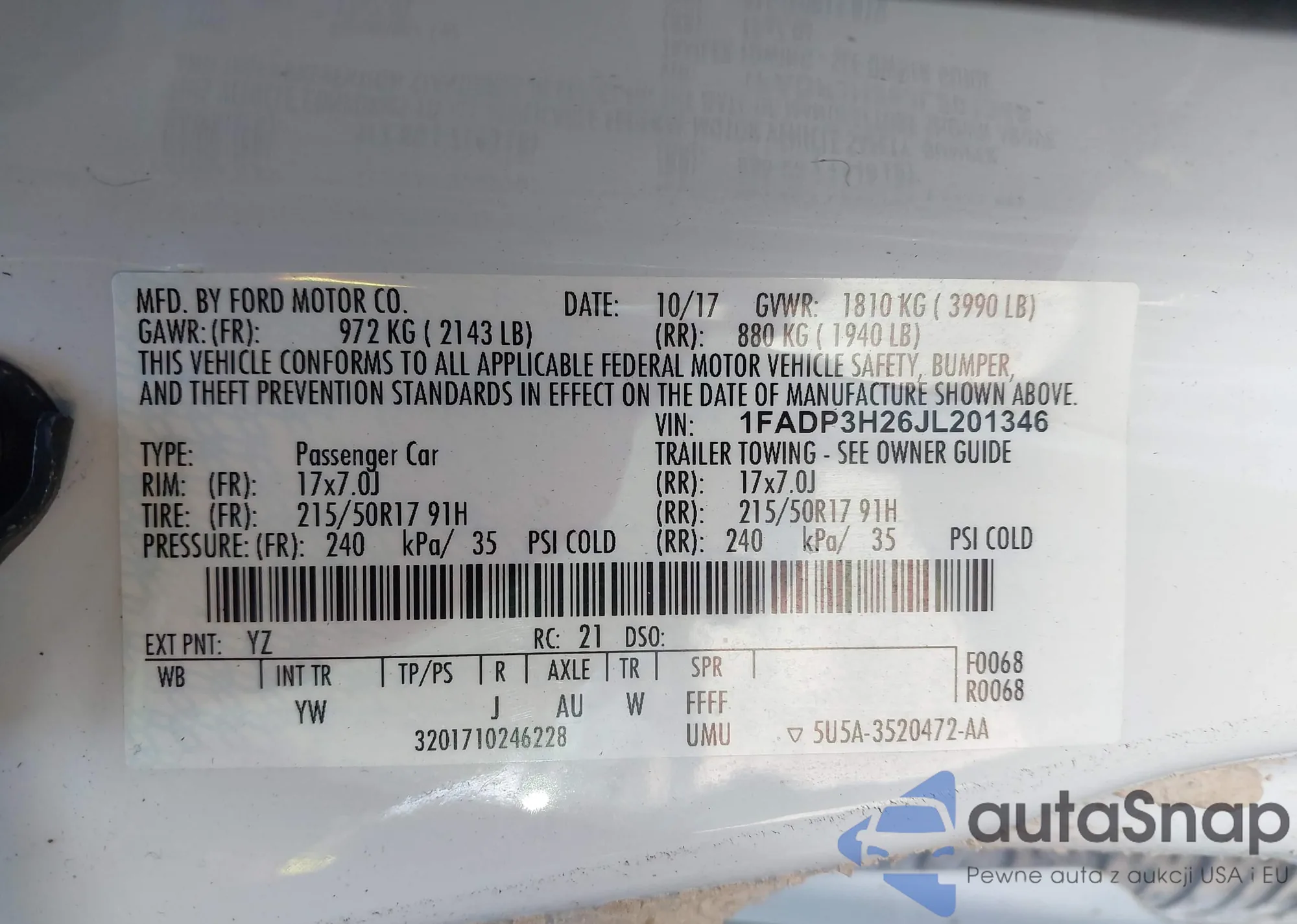 VIN: 1FADP3H26JL201346