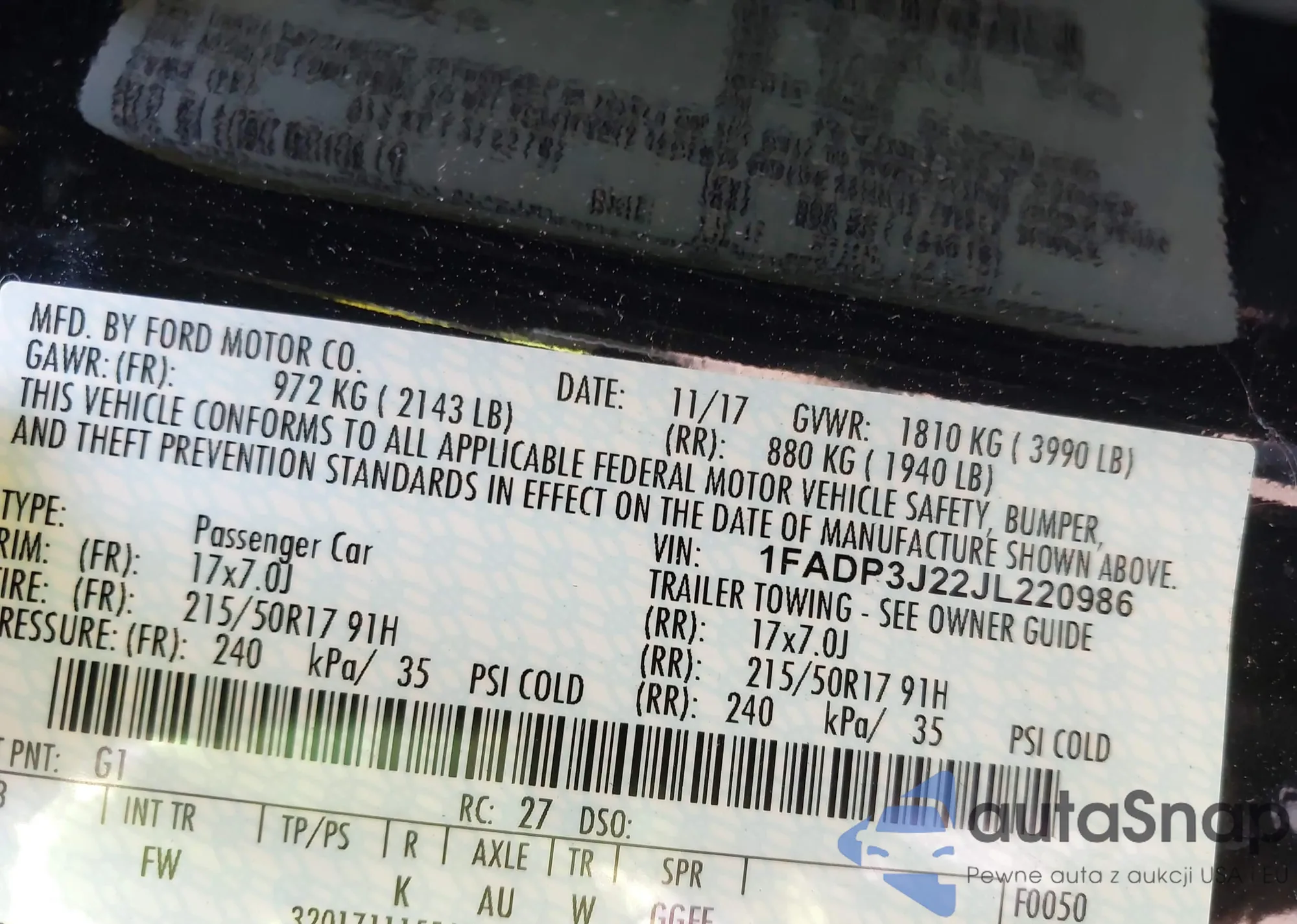 VIN: 1FADP3J22JL220986