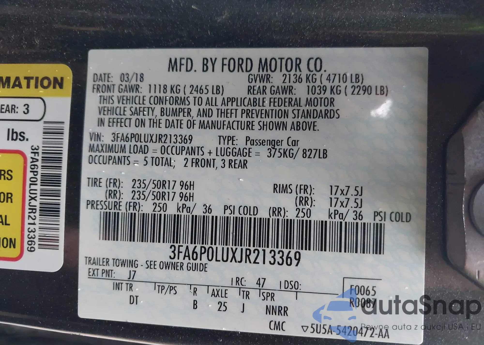 VIN: 3FA6P0LUXJR213369