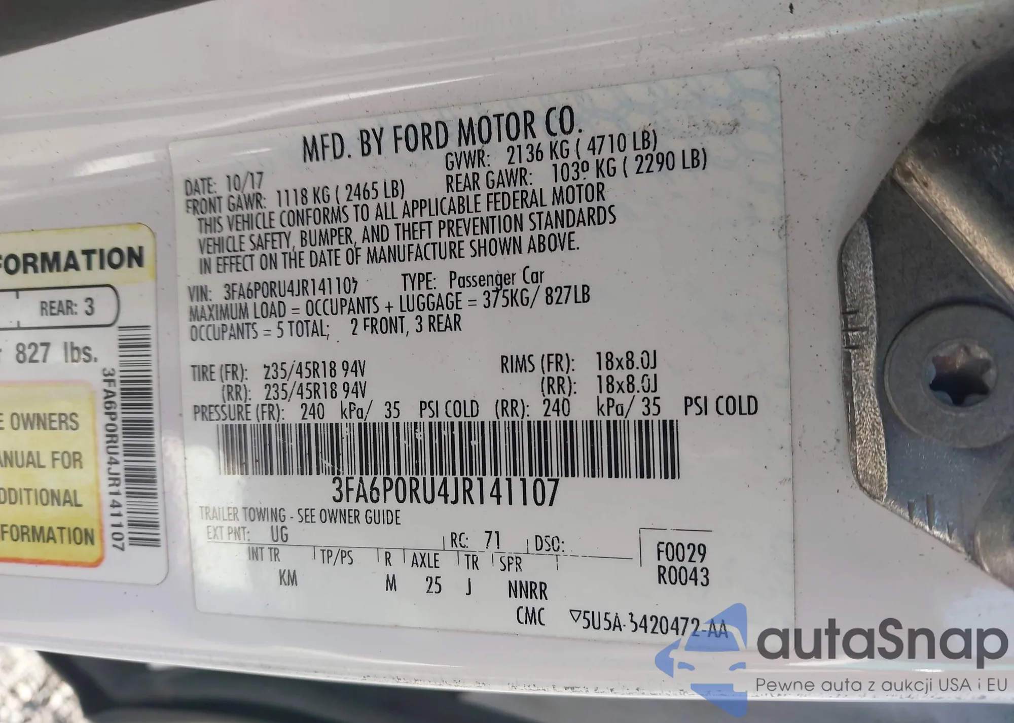 VIN: 3FA6P0RU4JR141107