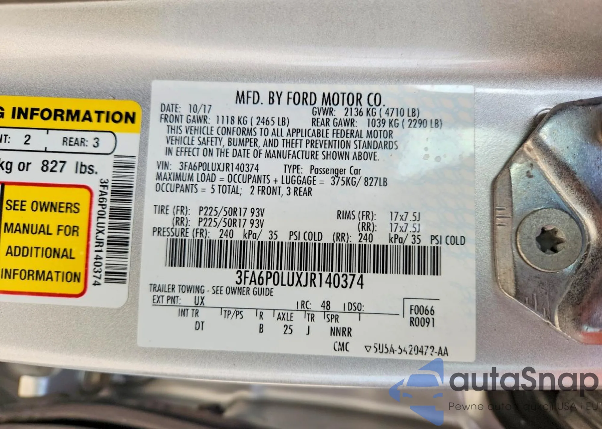 VIN: 3FA6P0LUXJR140374