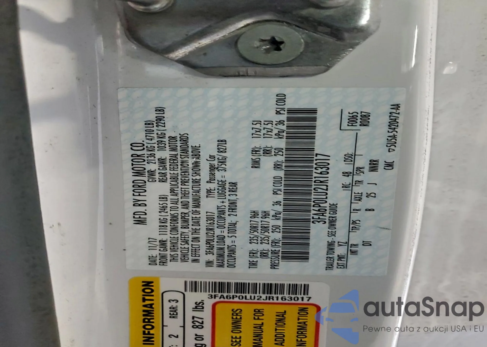 VIN: 3FA6P0LU2JR163017