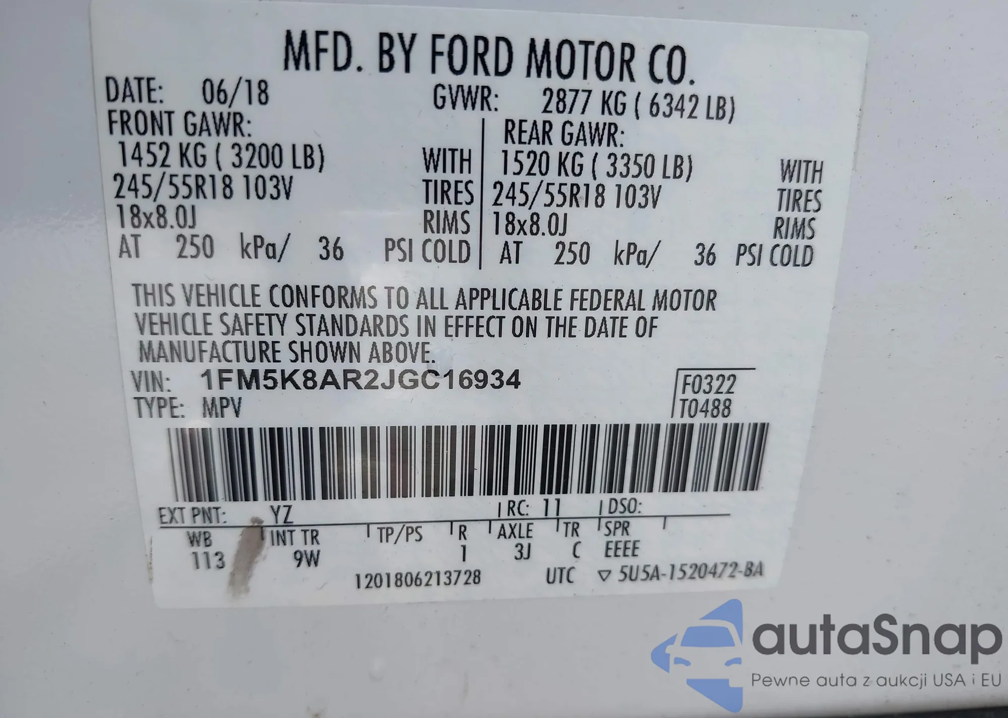 VIN: 1FM5K8AR2JGC16934
