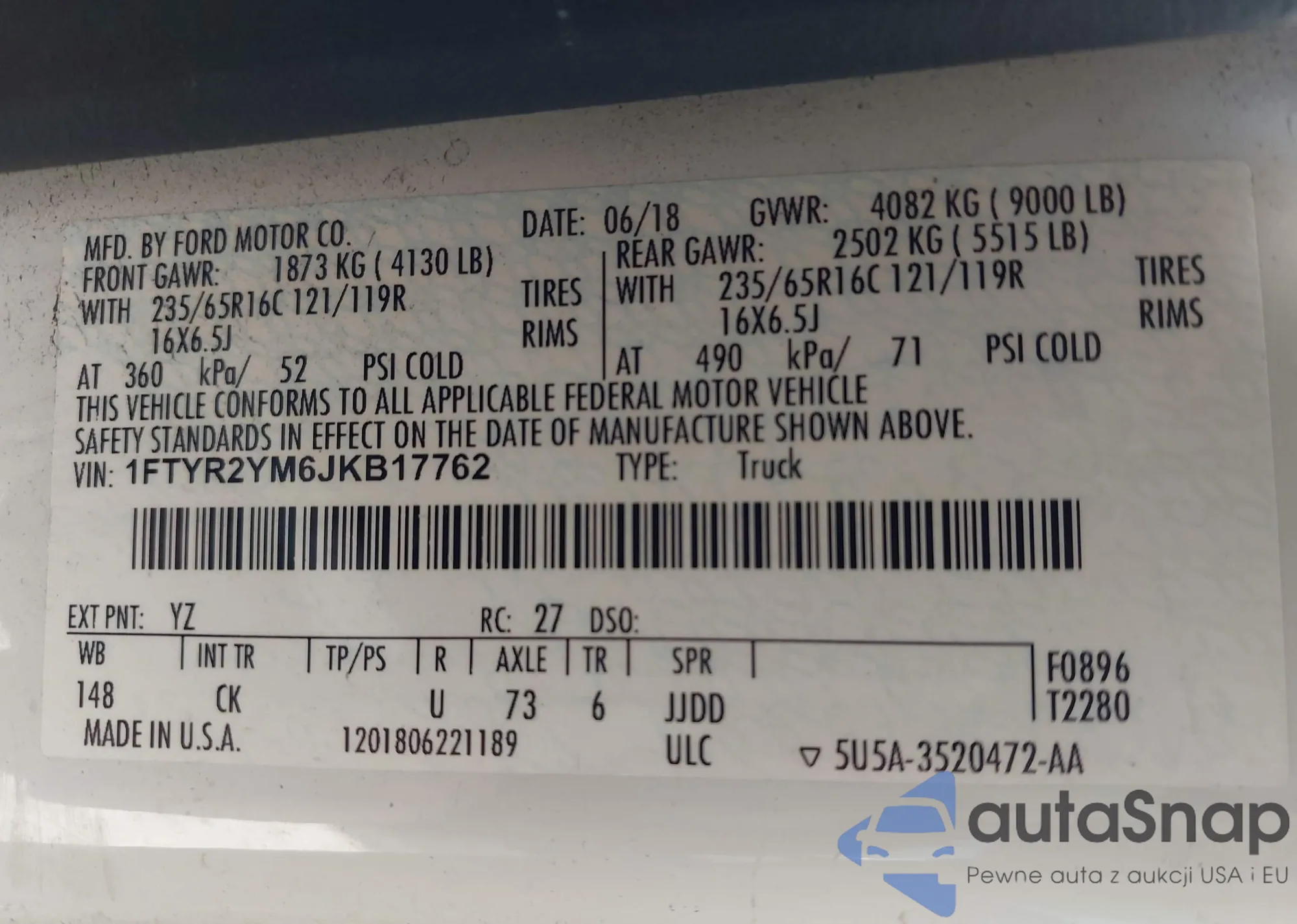 VIN: 1FTYR2YM6JKB17762