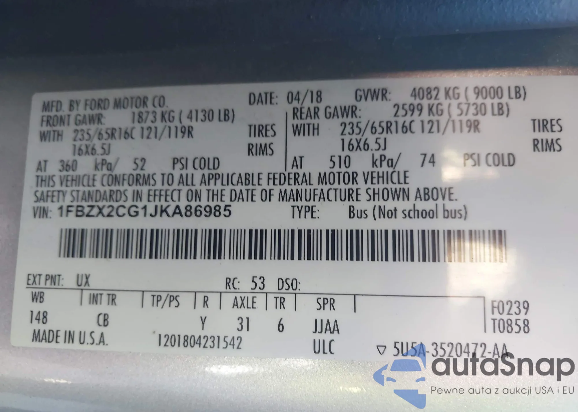 VIN: 1FBZX2CG1JKA86985