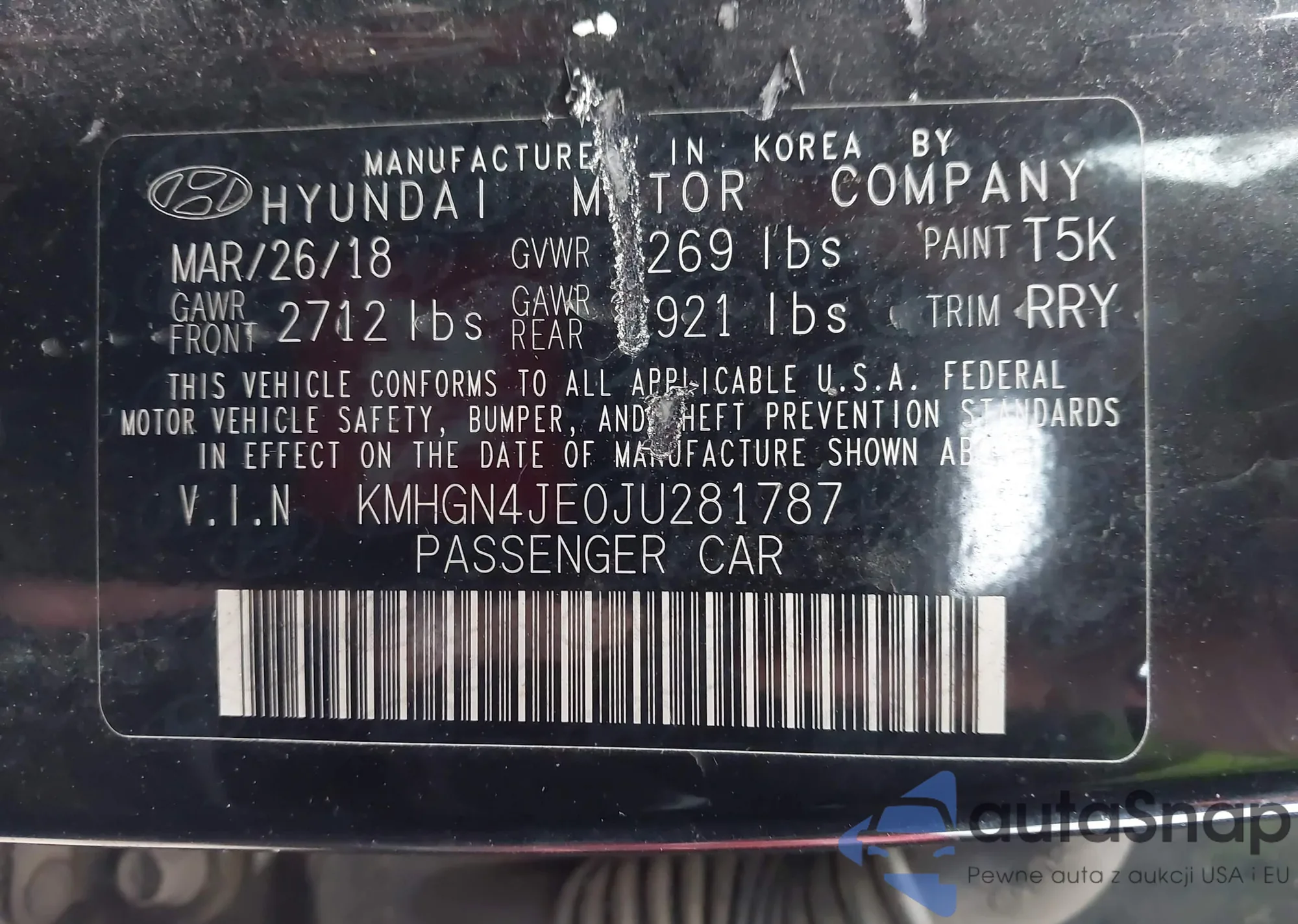 • VIN: KMHGN4JE0JU281787