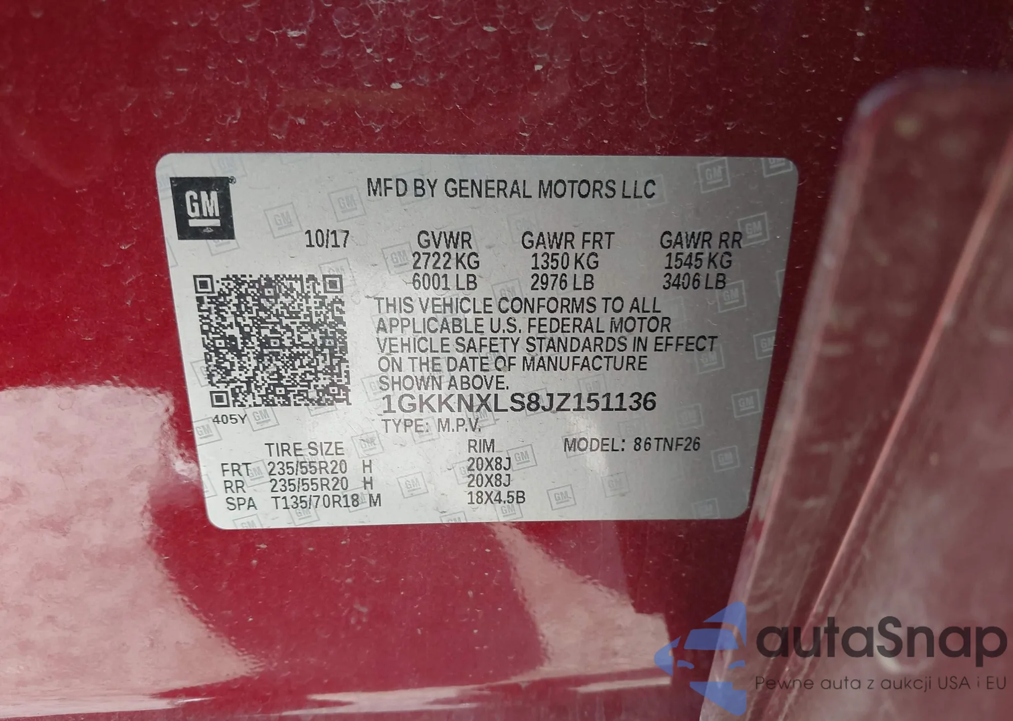 VIN: 1GKKNXLS8JZ151136