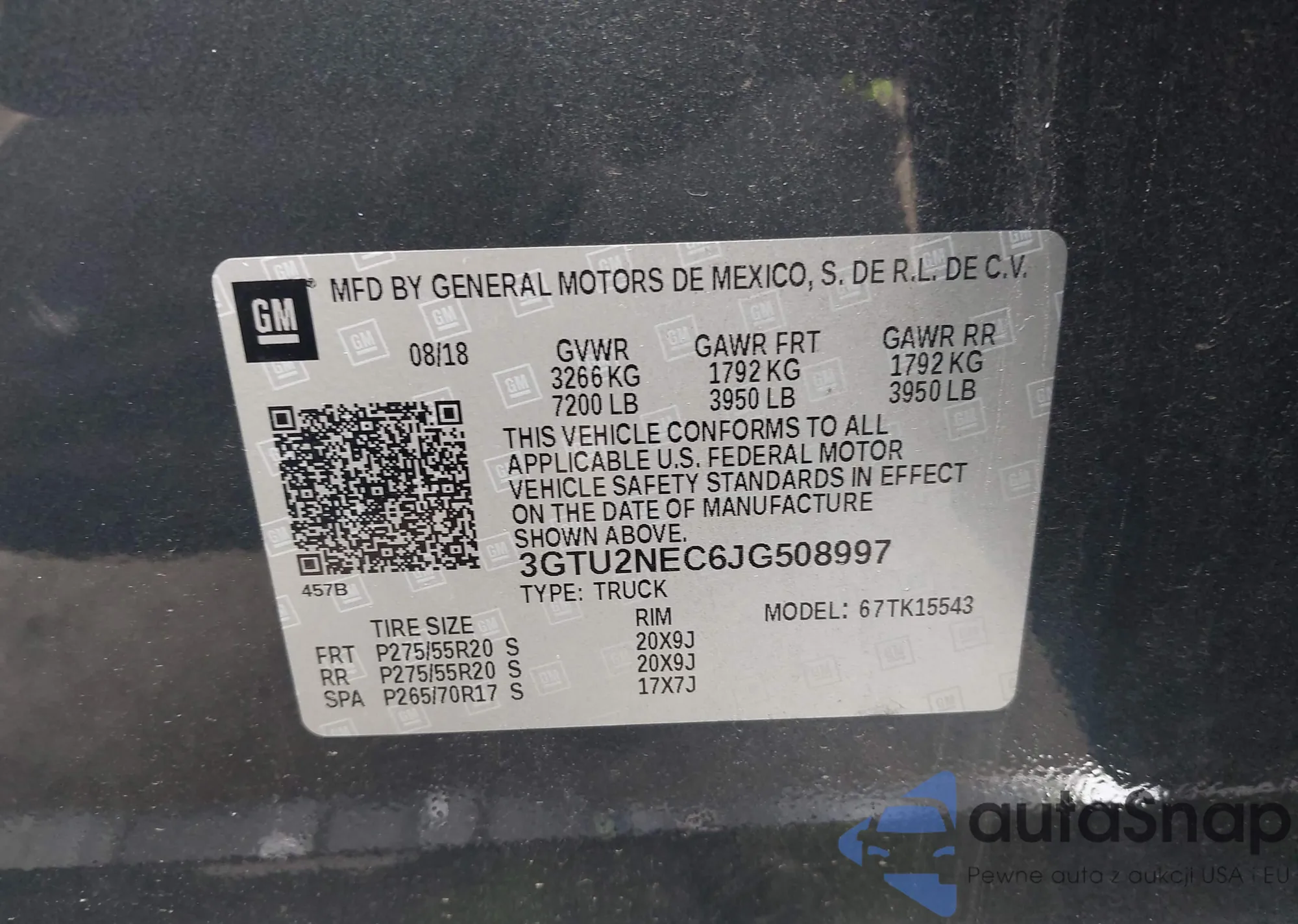 • VIN: 3GTU2NEC6JG508997
