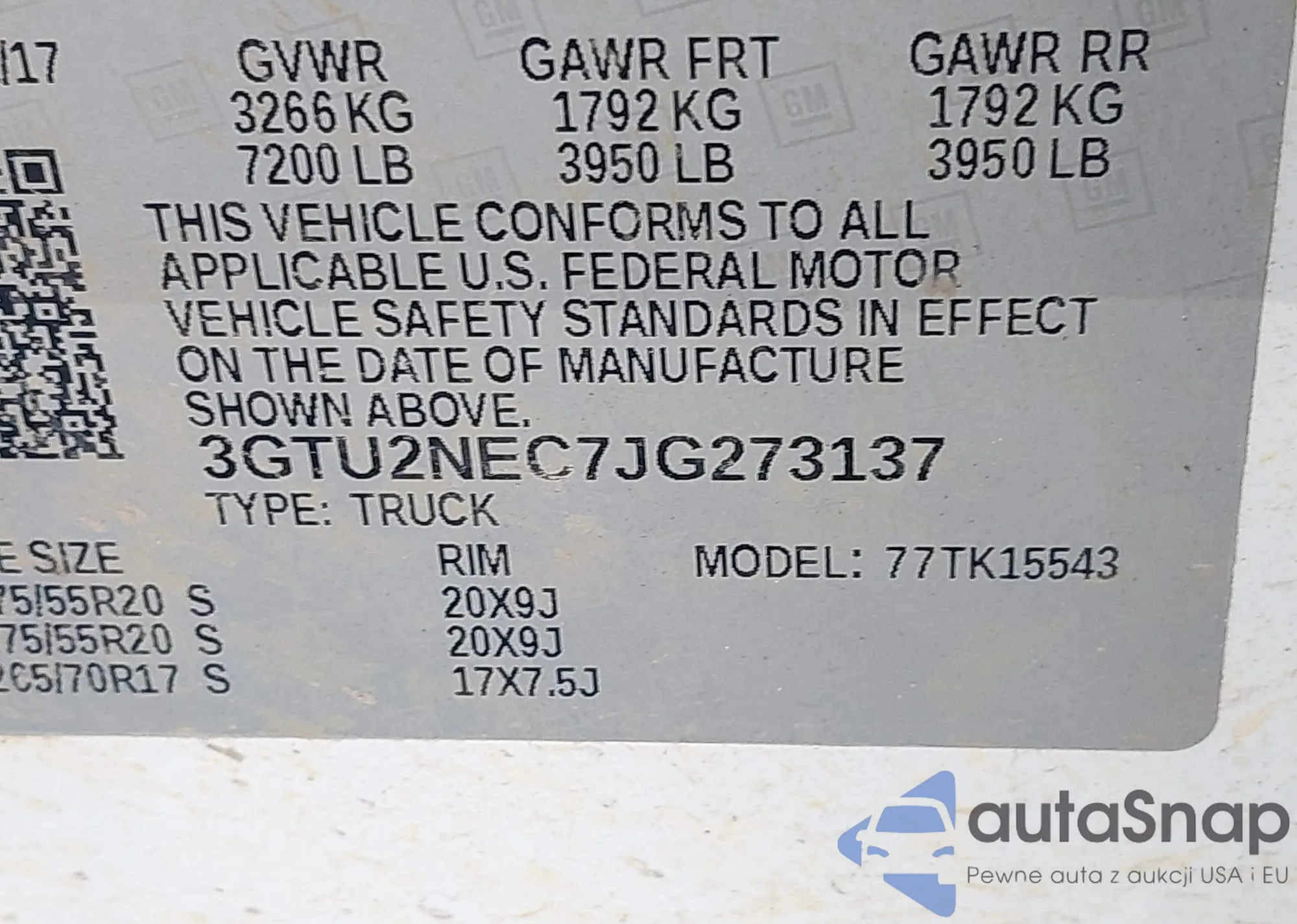 VIN: 3GTU2NEC7JG273137