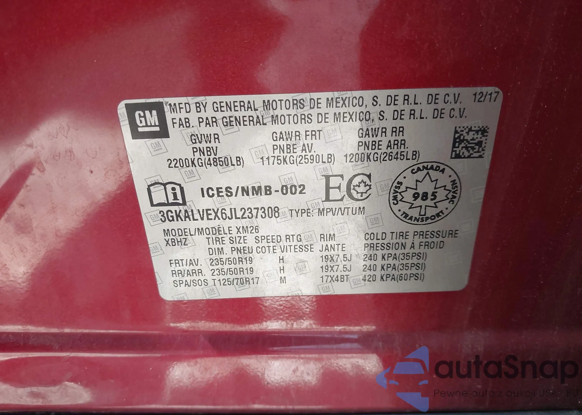 • VIN: 3GKALVEX6JL237308
