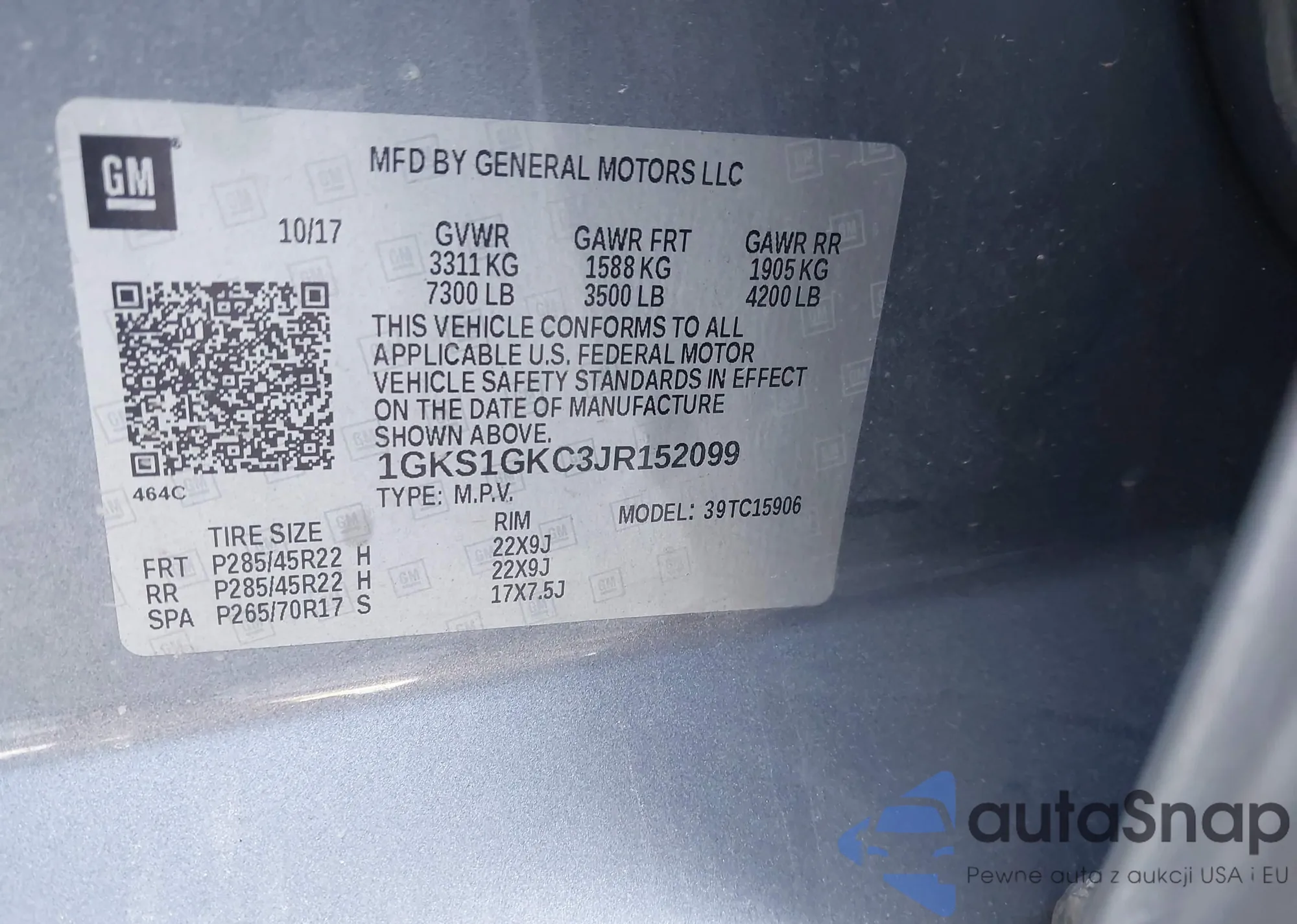 VIN: 1GKS1GKC3JR152099
