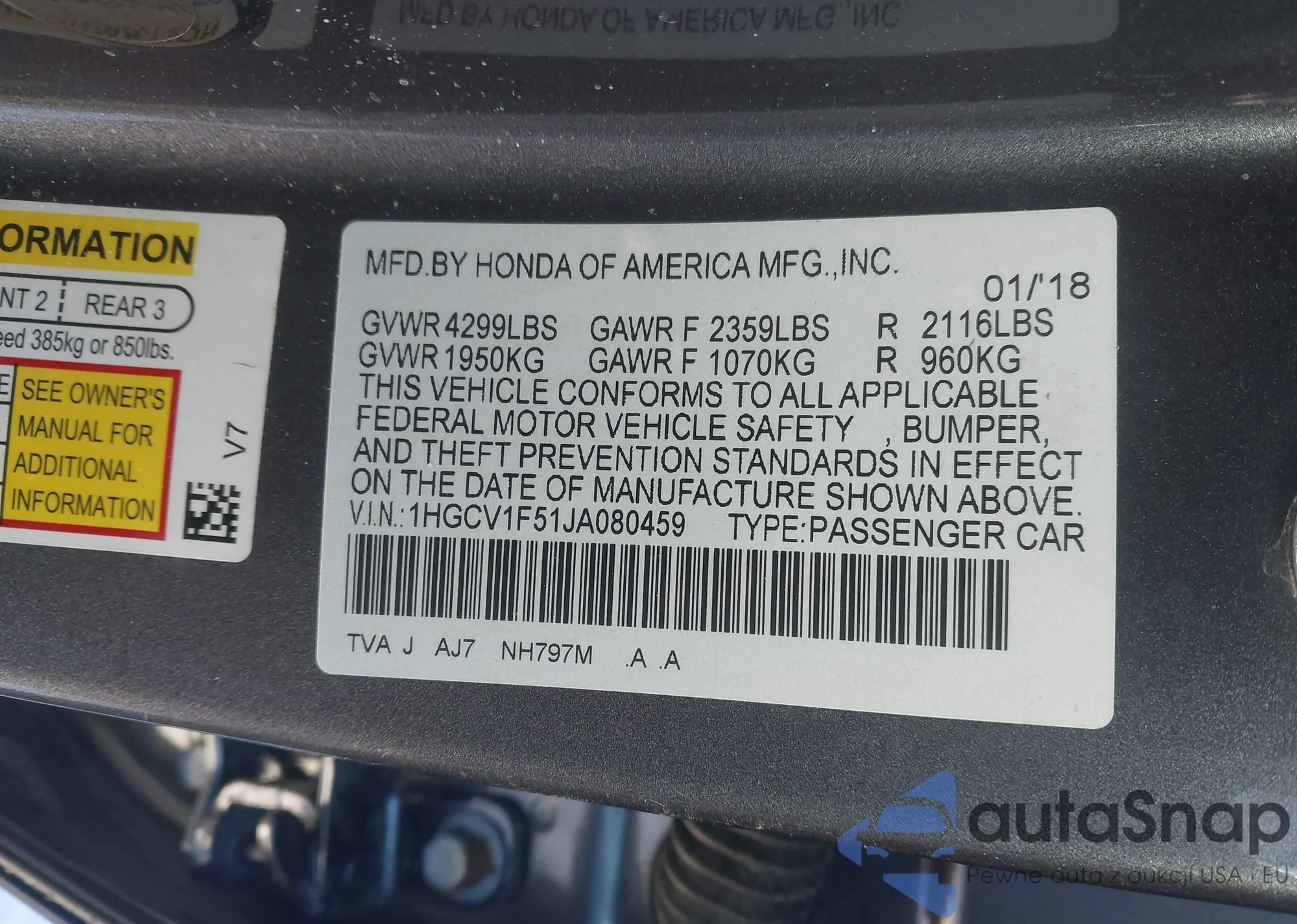 VIN: 1HGCV1F51JA080459