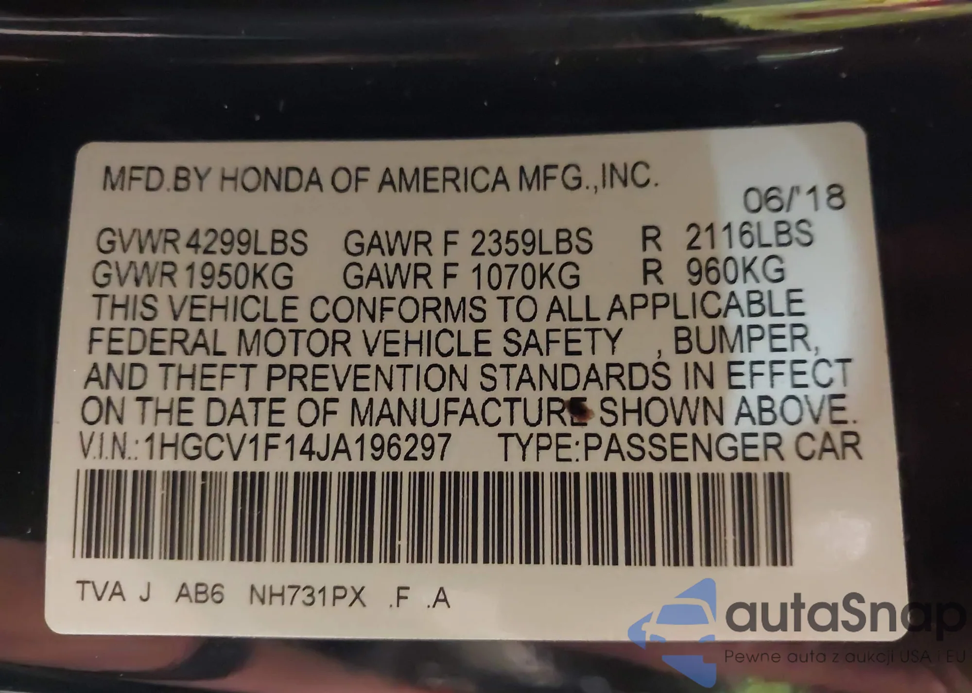 VIN: 1HGCV1F14JA196297