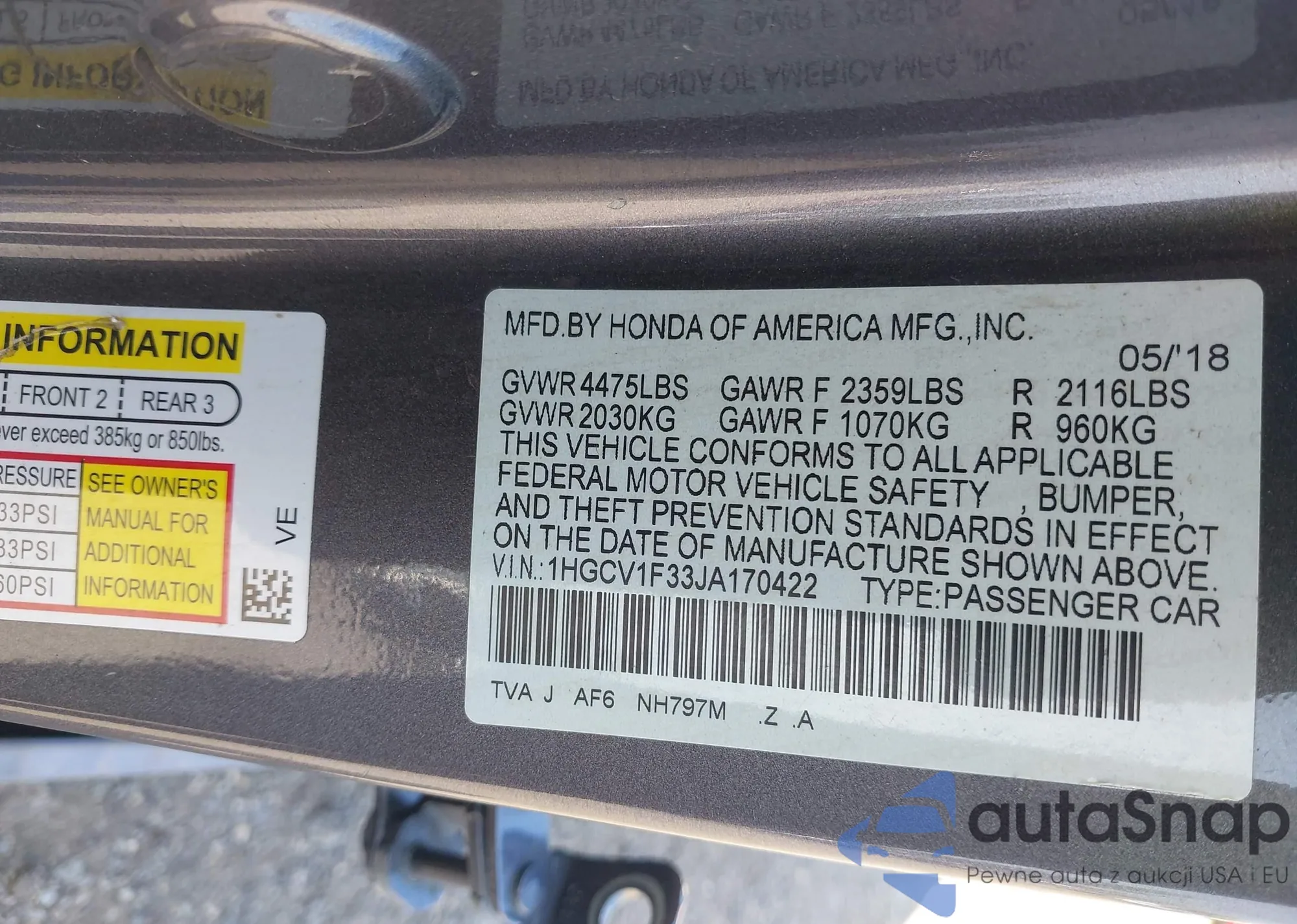 VIN: 1HGCV1F33JA170422