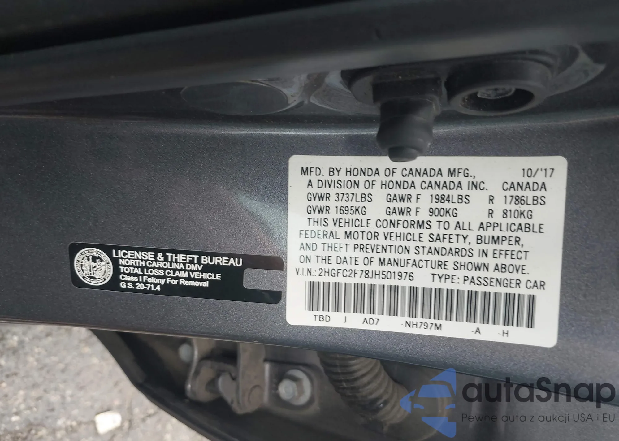 VIN: 2HGFC2F78JH501976