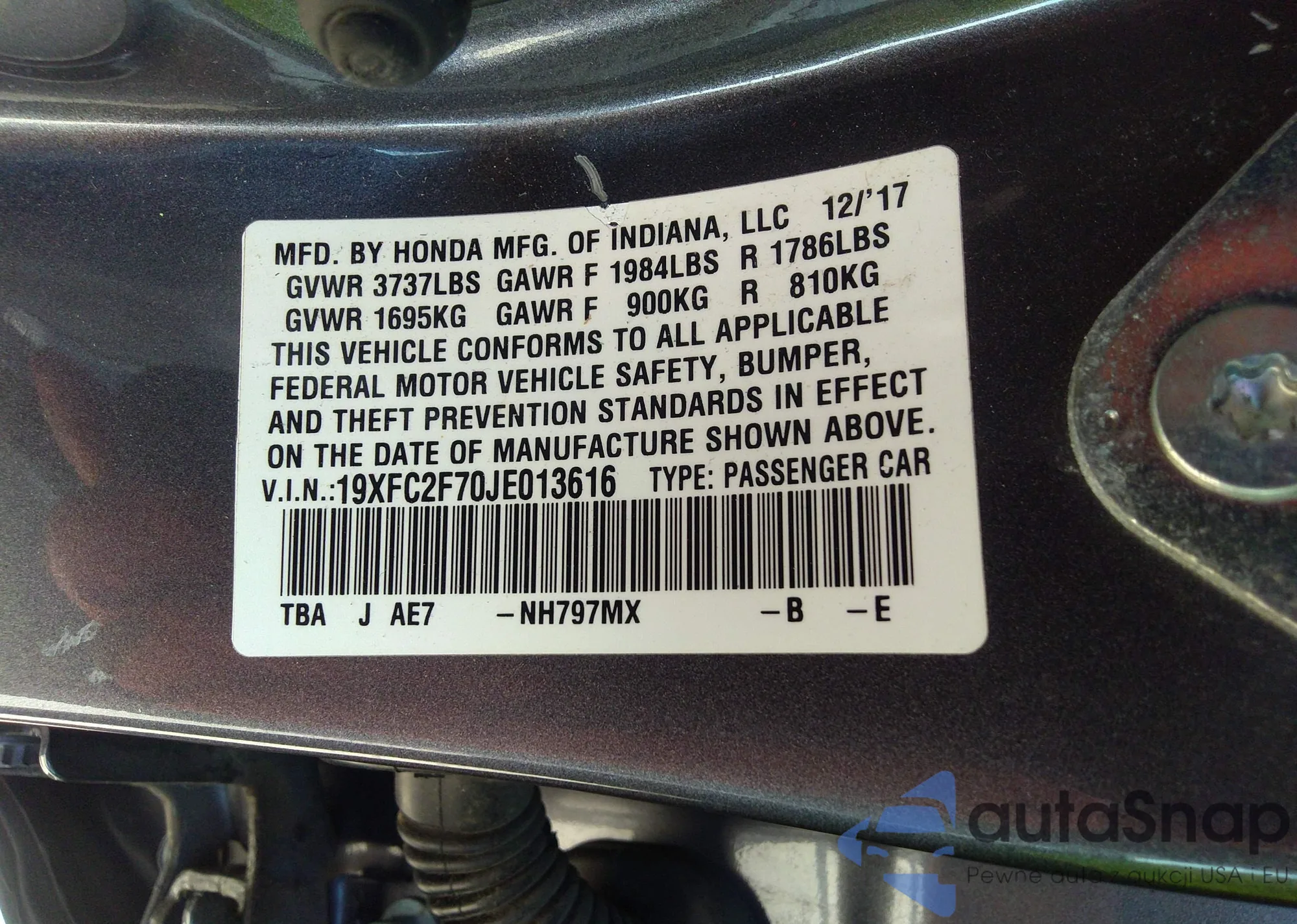 VIN: 19XFC2F70JE013616