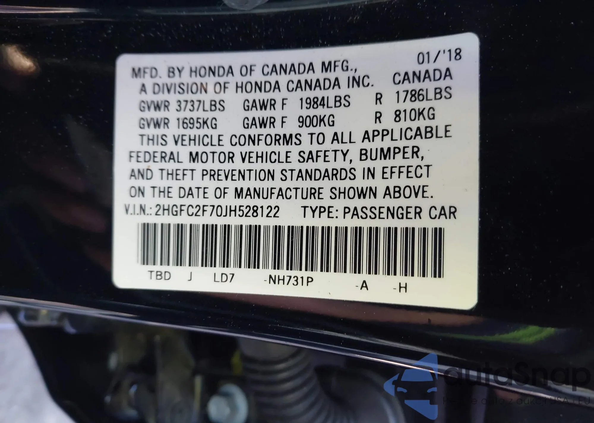 VIN: 2HGFC2F70JH528122