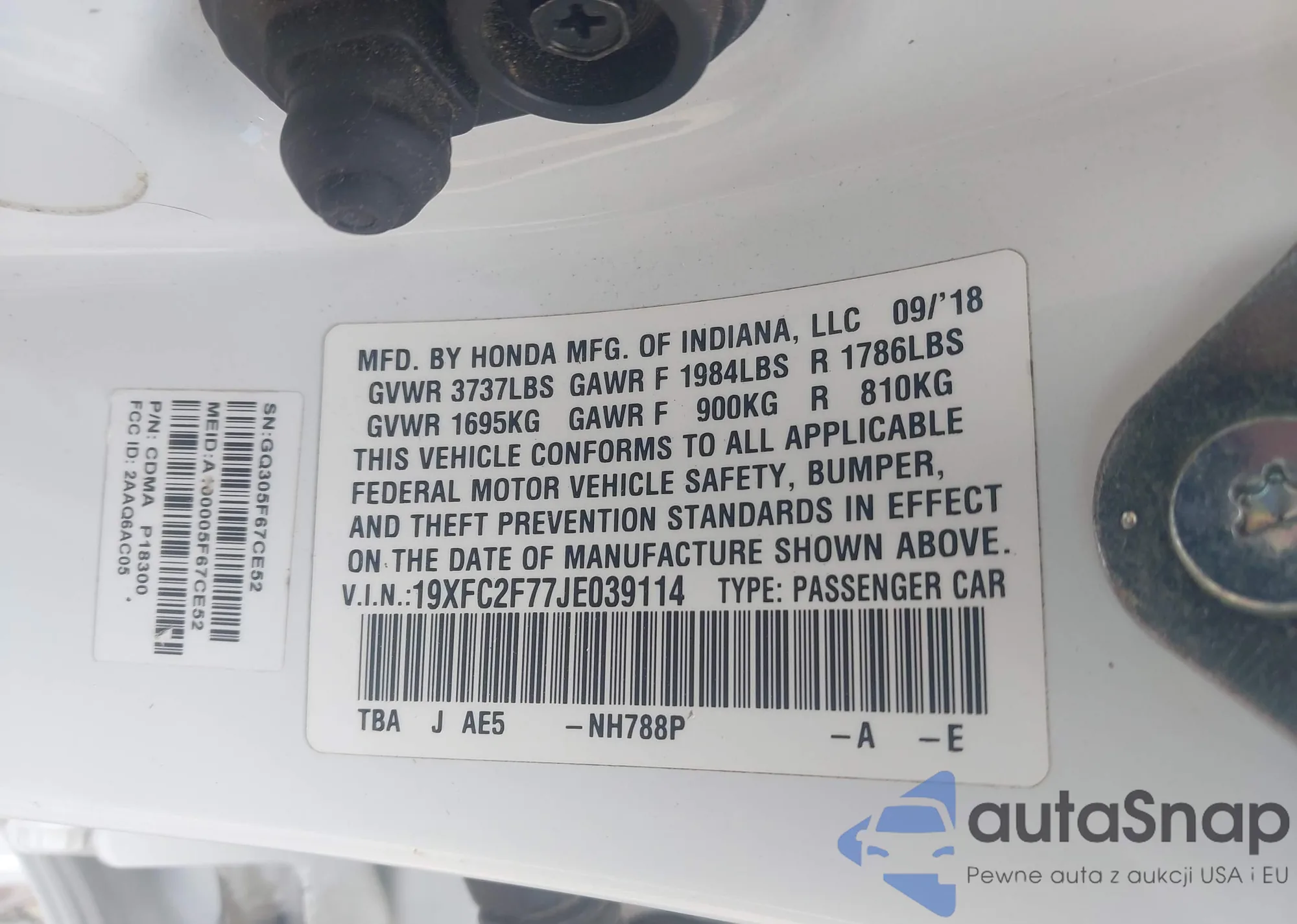 VIN: 19XFC2F77JE039114