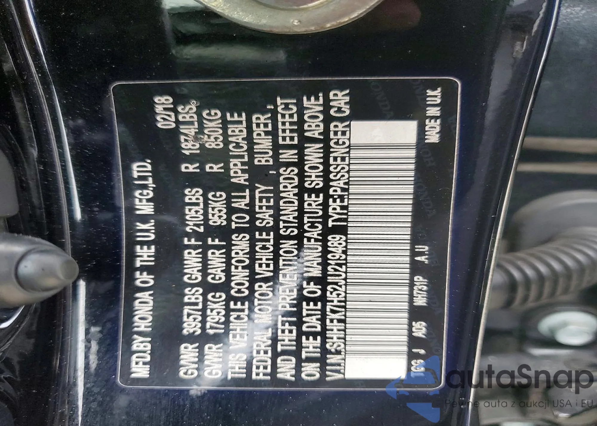 Samochód Honda Civic 2018 (VIN SHHFK7H52JU219489) nie był wcześniej licytowany. Dokumenty są czyste, przebieg odpowiada lub jest niższy niż średnia rynku. Sprzedaje go firma ubezpieczeniowa – polecamy zakup. Dostawa do portu zajmie ok. 6–8 tygodni.