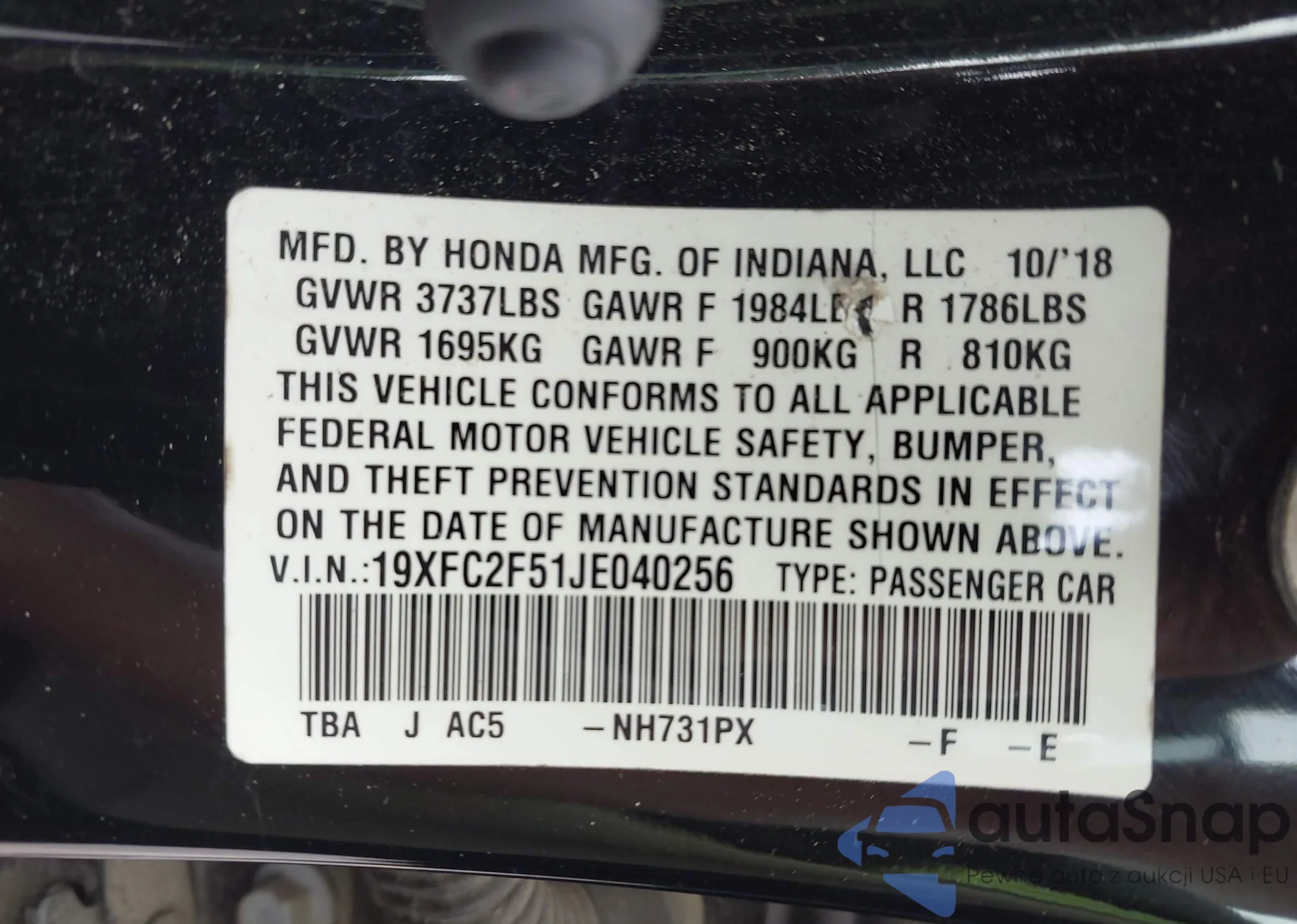 VIN: 19XFC2F51JE040256