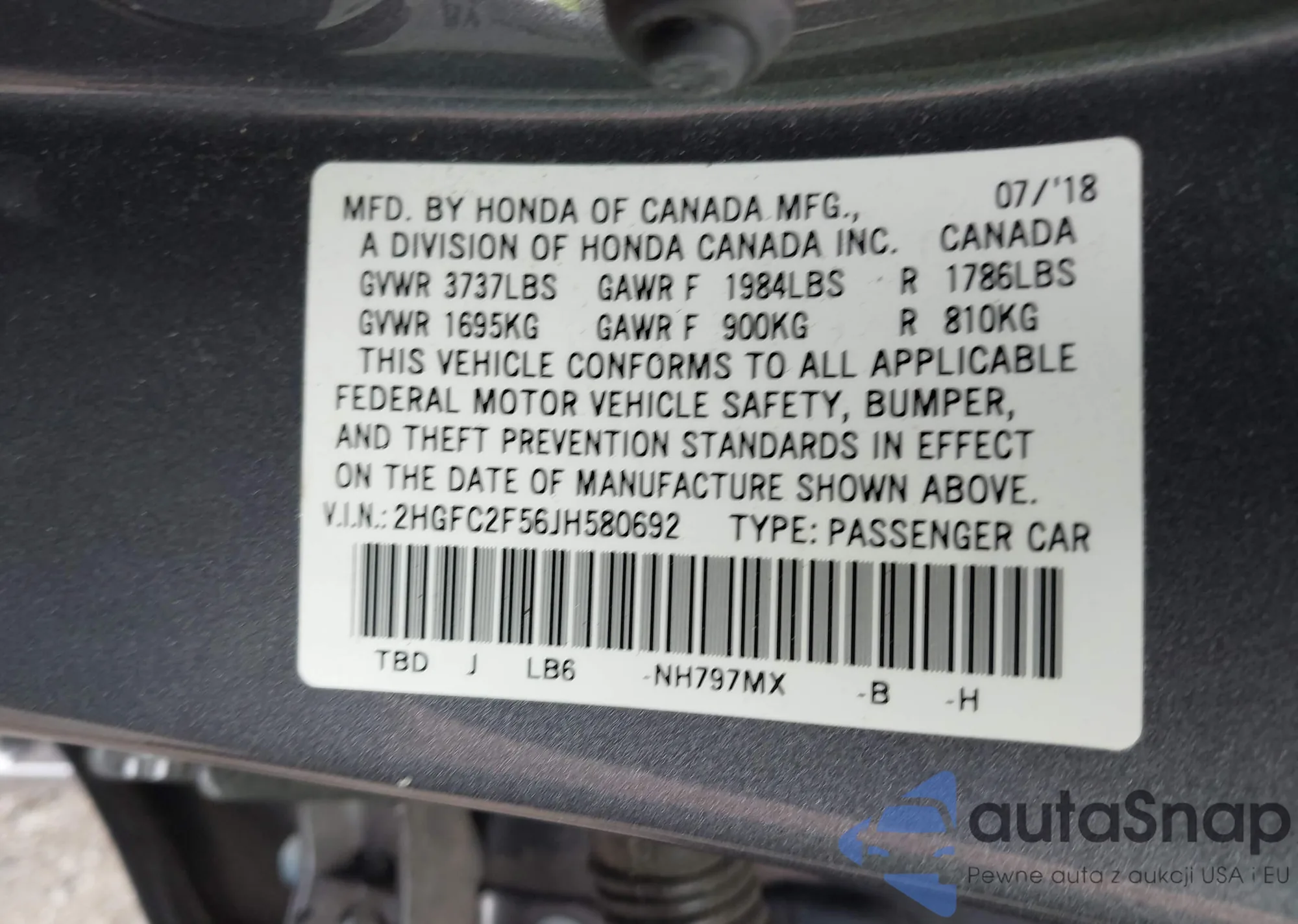 VIN: 2HGFC2F56JH580692