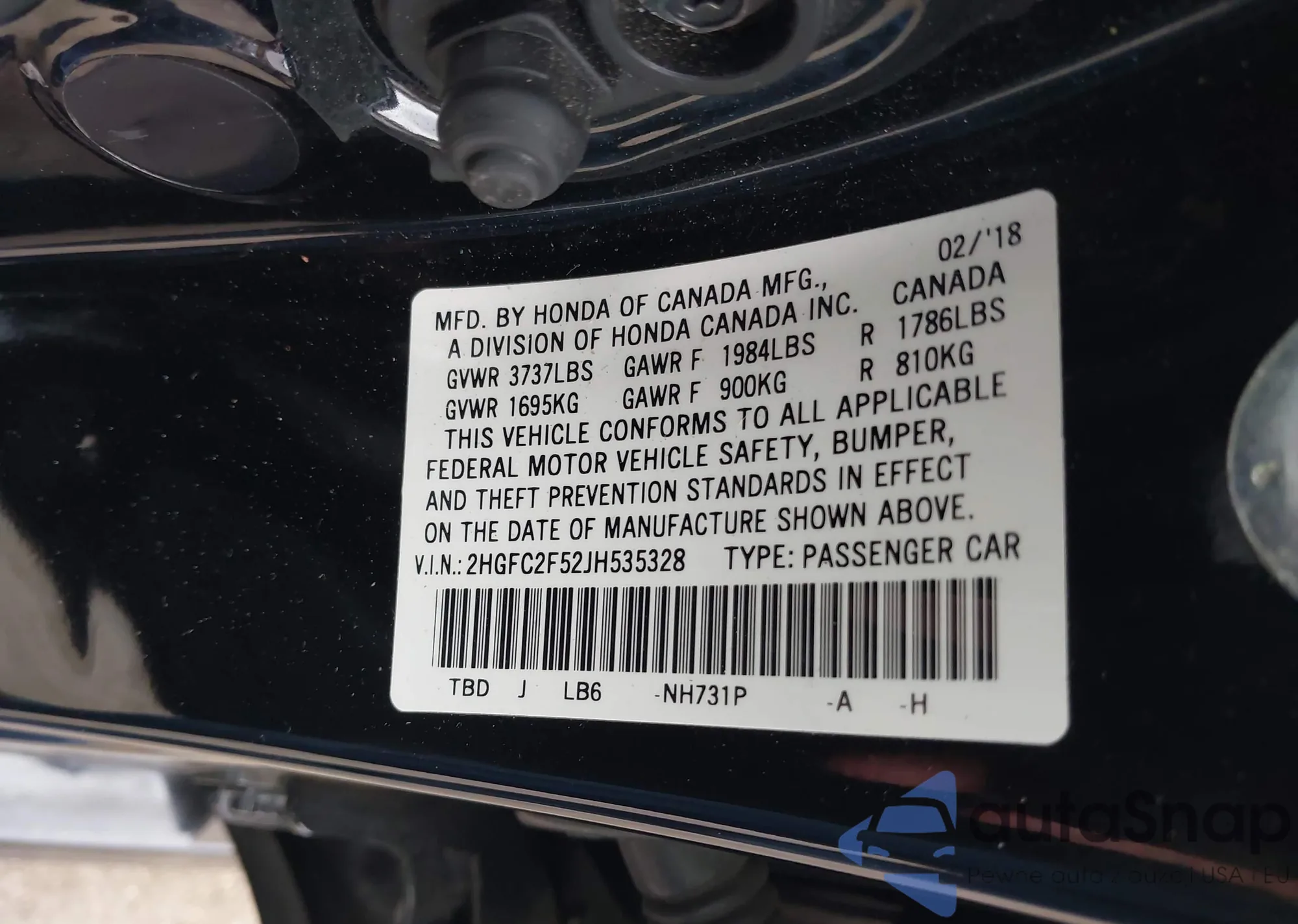VIN: 2HGFC2F52JH535328