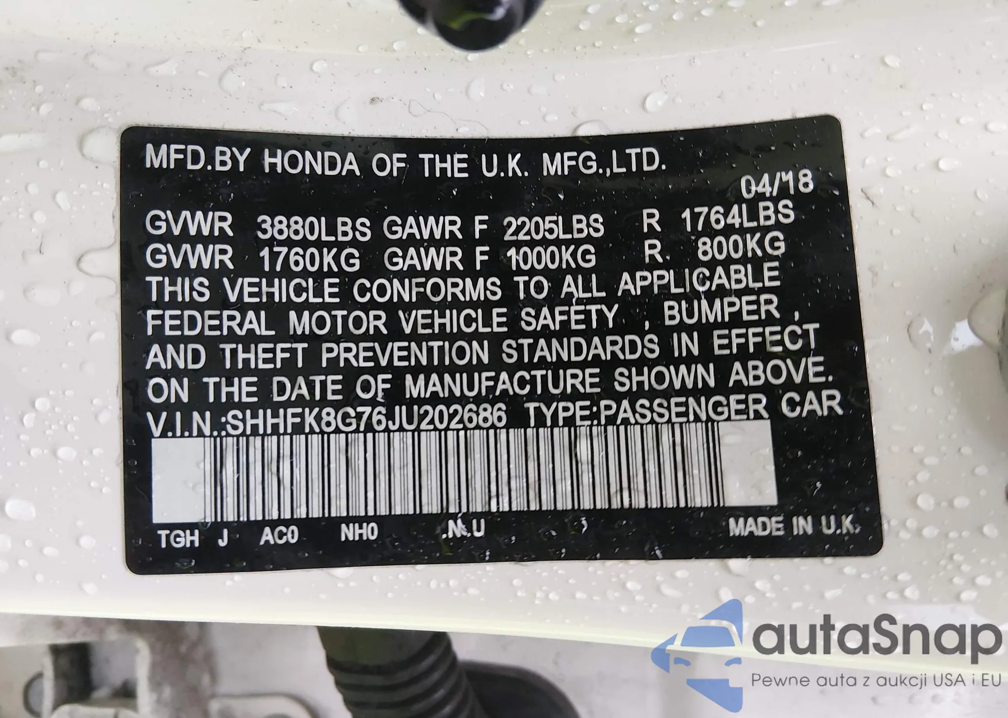 Samochód Honda Civic Type R 2018 (VIN SHHFK8G76JU202686) nie był wcześniej licytowany. Dokumenty są czyste, przebieg odpowiada lub jest niższy niż średnia rynku. Sprzedaje go firma ubezpieczeniowa – polecamy zakup. Dostawa do portu zajmie ok. 6–8 tygodni.